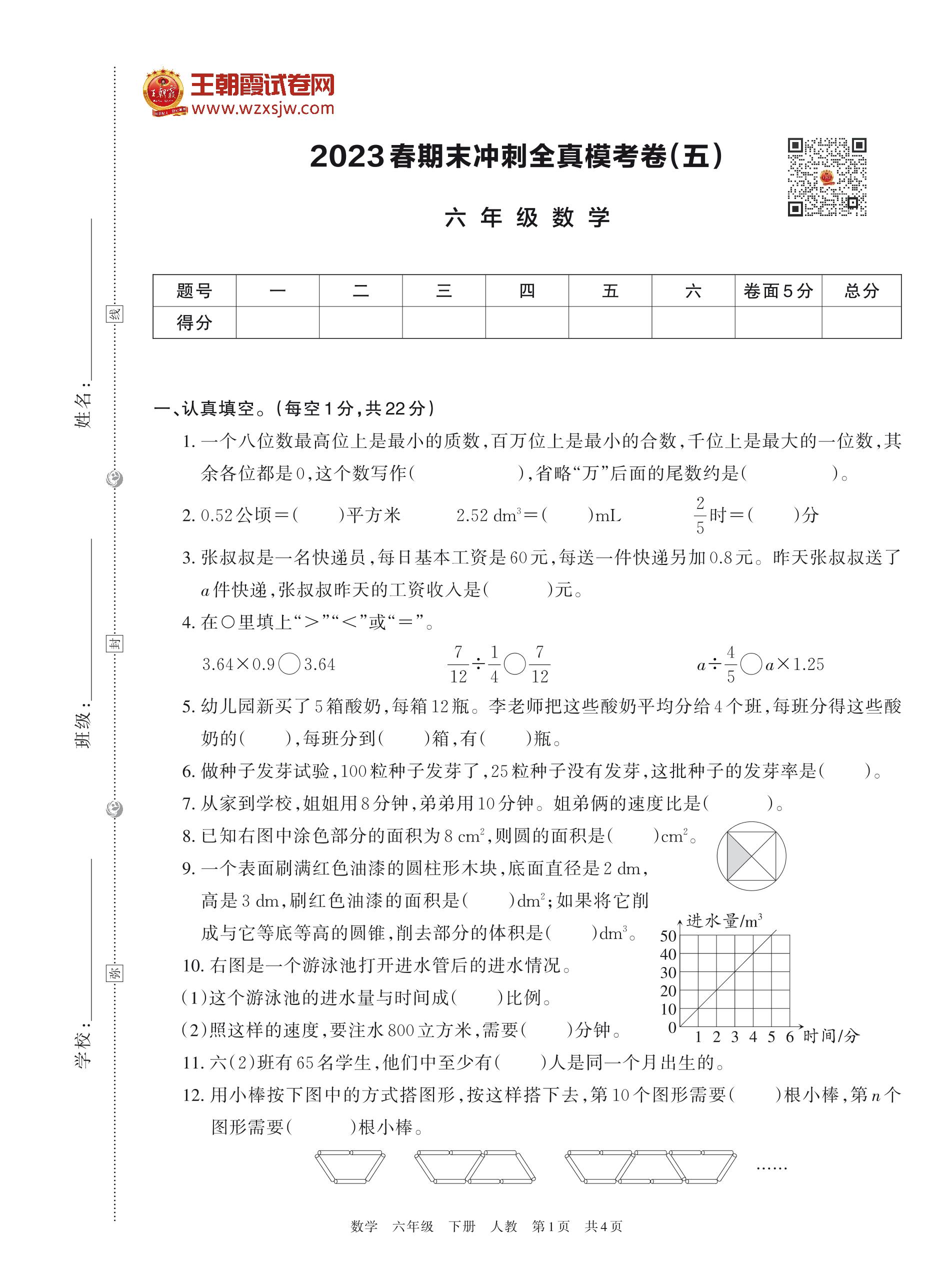2023春期末冲刺全真模考卷(五)六年级数学(人教版)