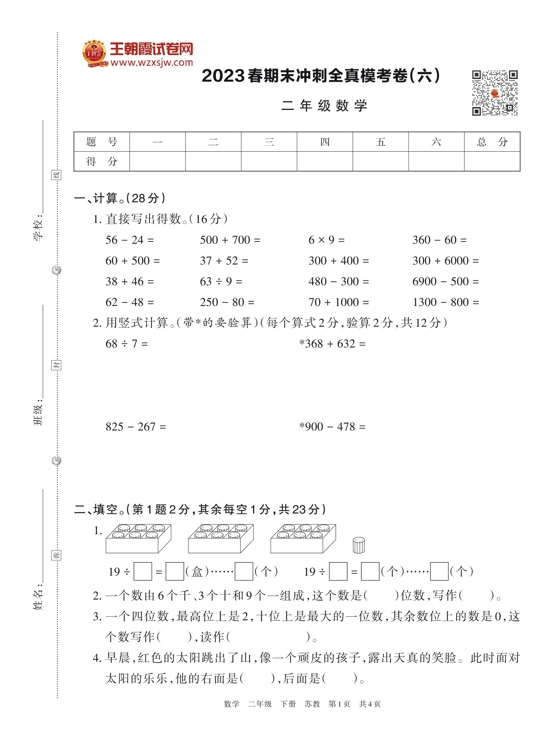 2023春期末冲刺全真模考卷(六)二年级数学(苏教版)