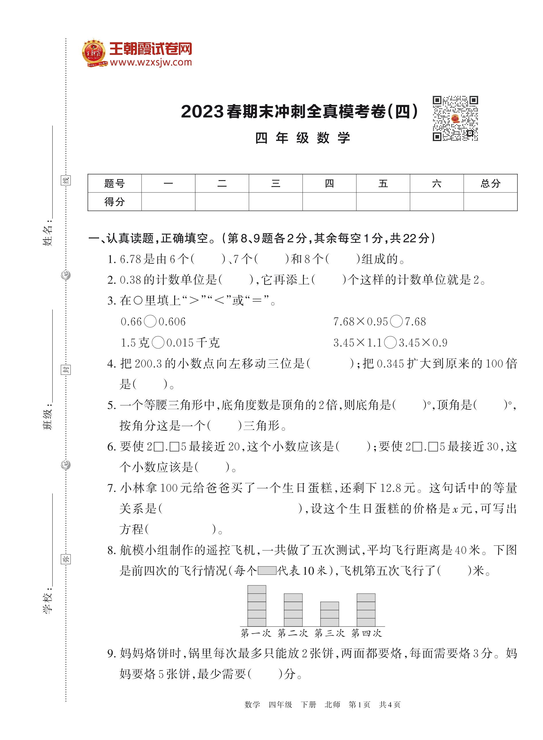 2023春期末冲刺全真模考卷(四)四年级数学(北师版)