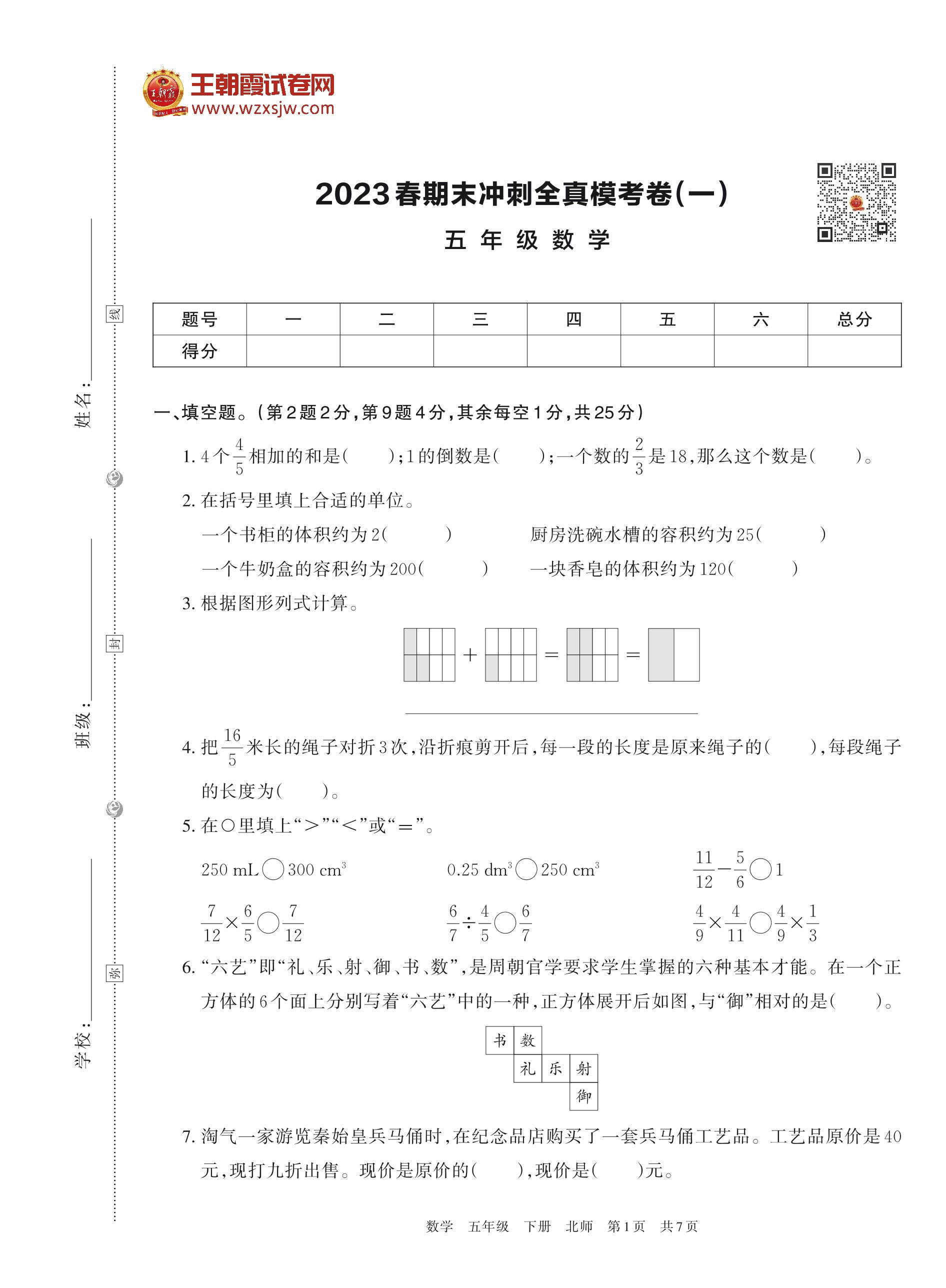 2023春期末冲刺全真模考卷(一)五年级数学(北师版)