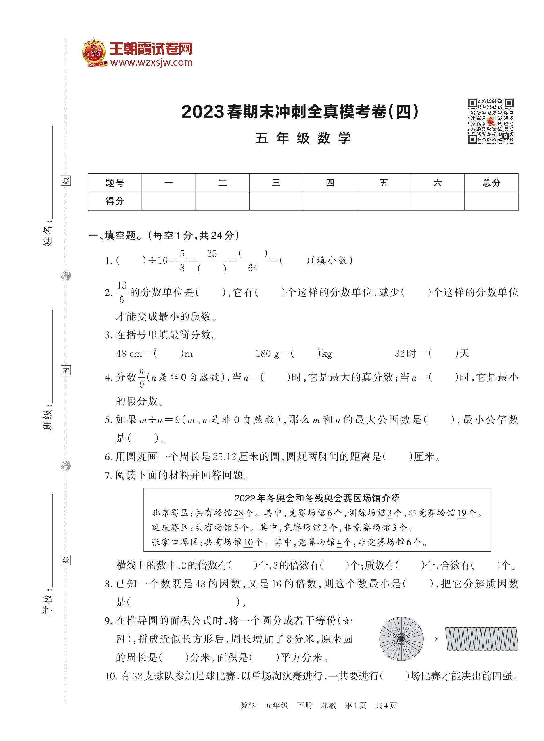 2023春期末冲刺全真模考卷(四)五年级数学(苏教版)