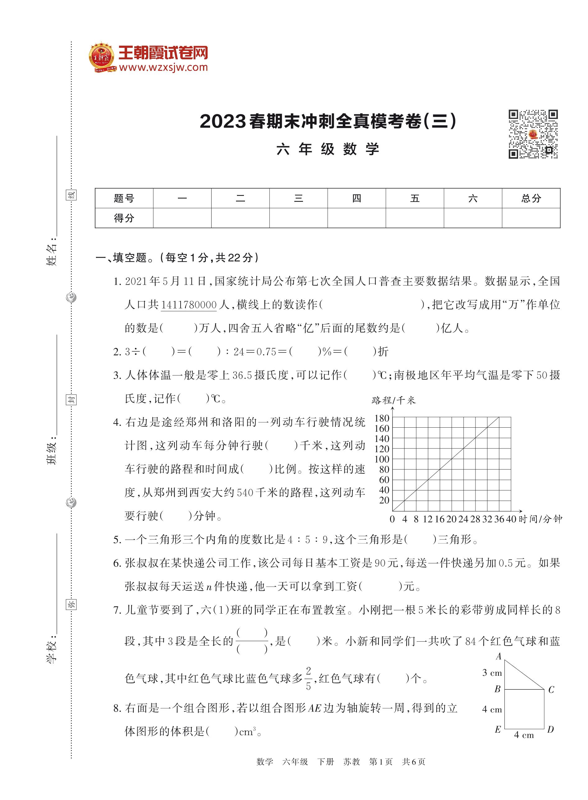 2023春期末冲刺全真模考卷(三)六年级数学(苏教版)