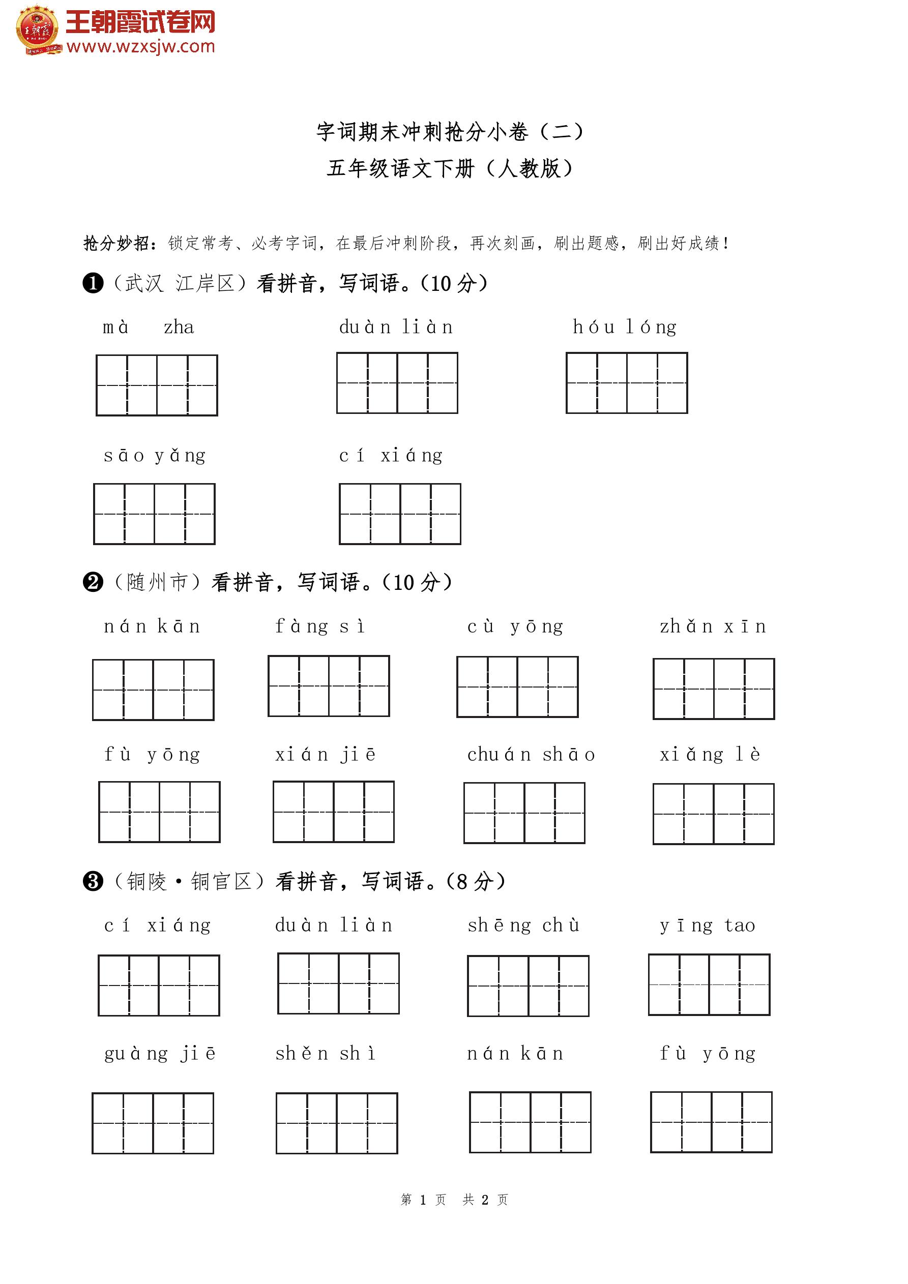 五年级语文下册 字词期末冲刺抢分小卷(二)