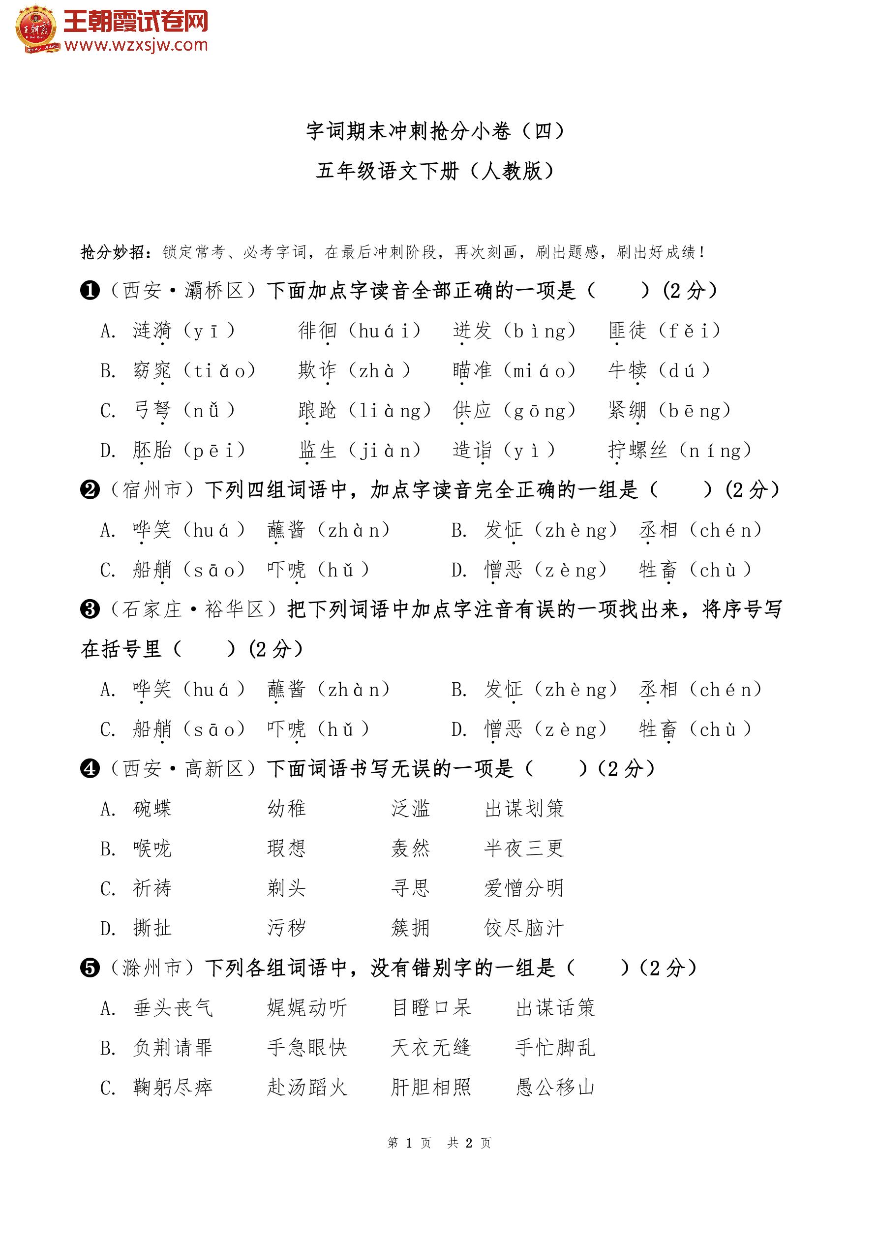 五年级语文下册 字词期末冲刺抢分小卷(四)