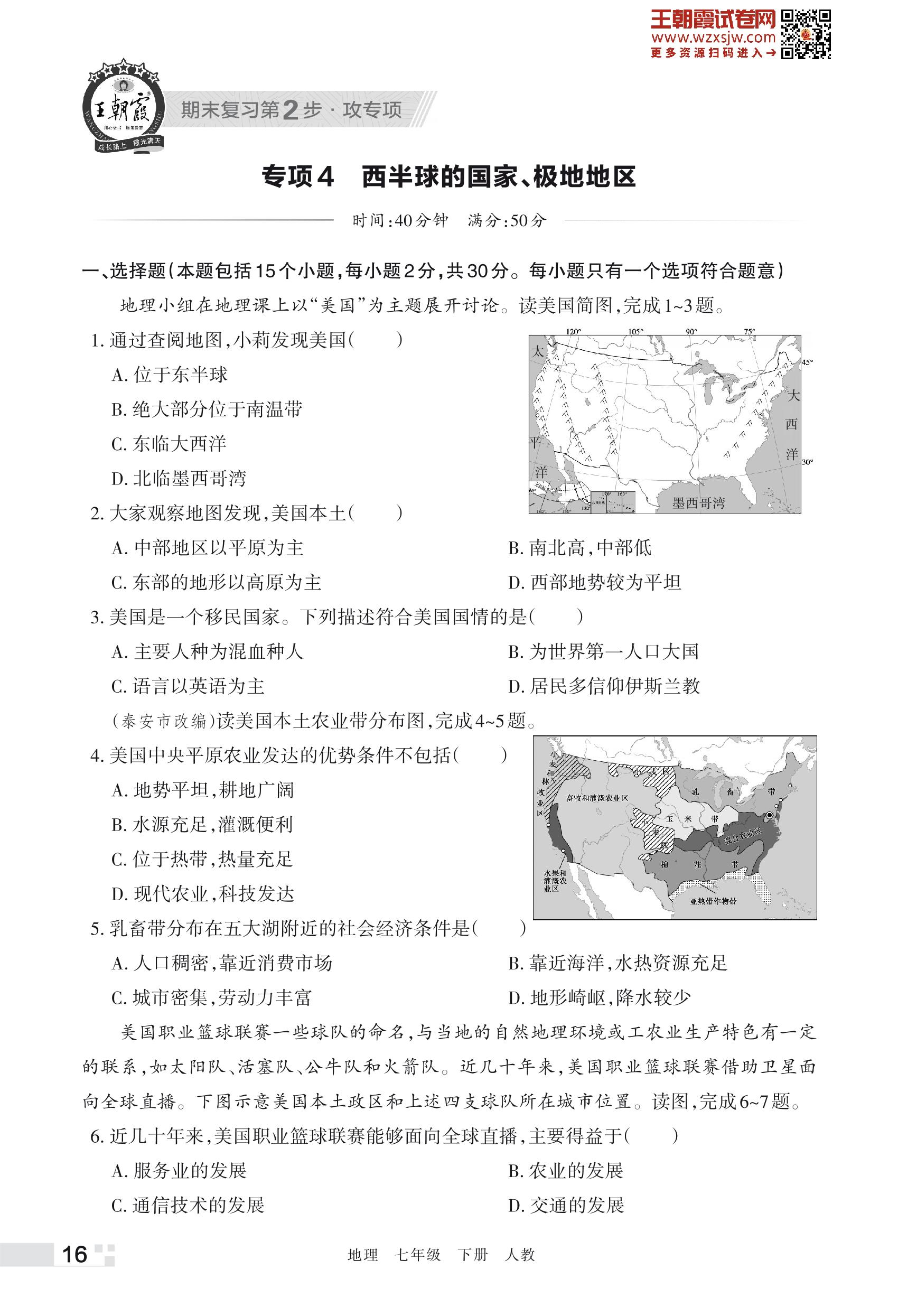 王朝霞期末专项卷——西半球的国家、极地地区七年级下册地理(人教版)_R230619091227339【4】