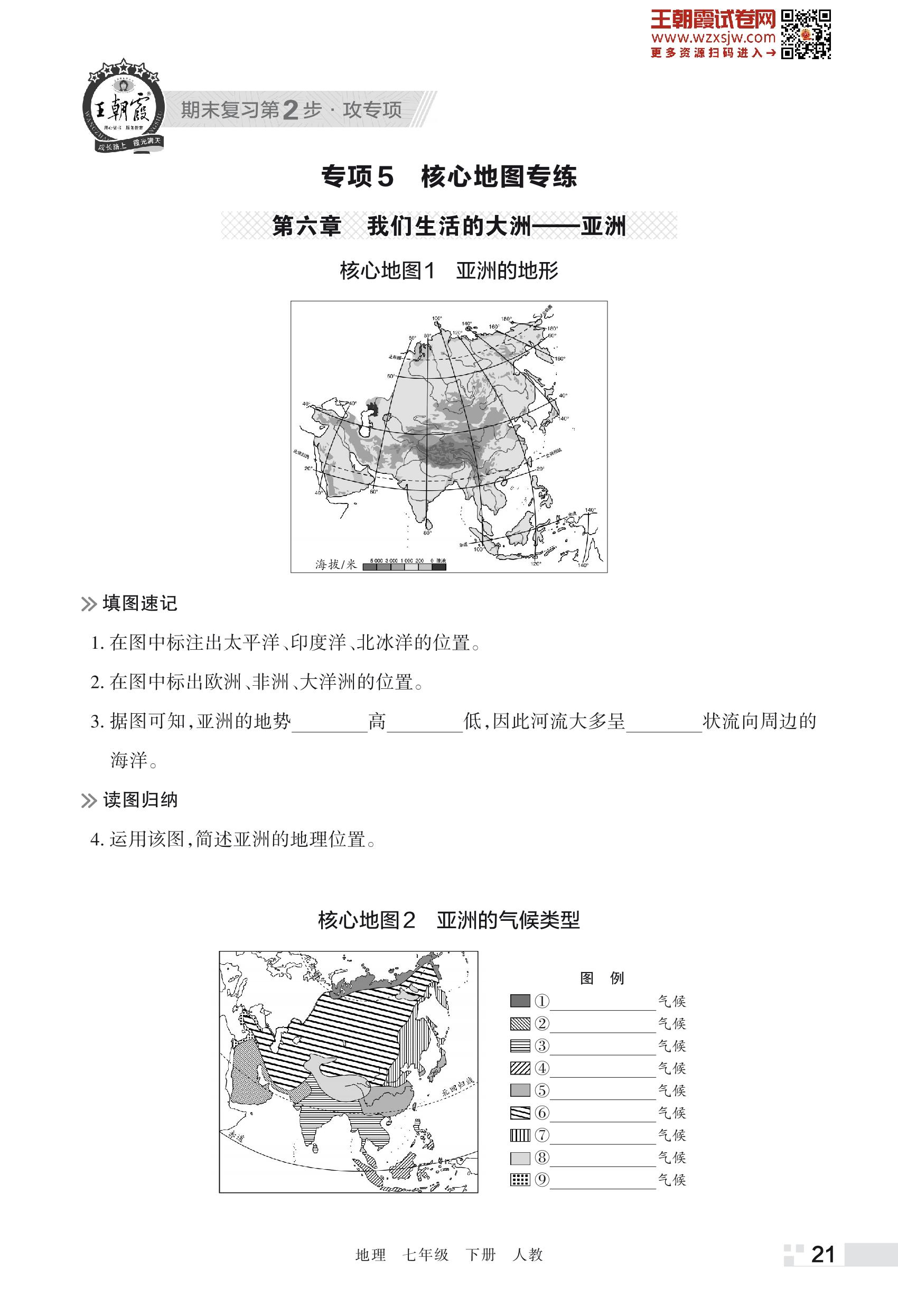 王朝霞期末专项卷——核心地图专练七年级下册地理(人教版)_R230619091228226【5】