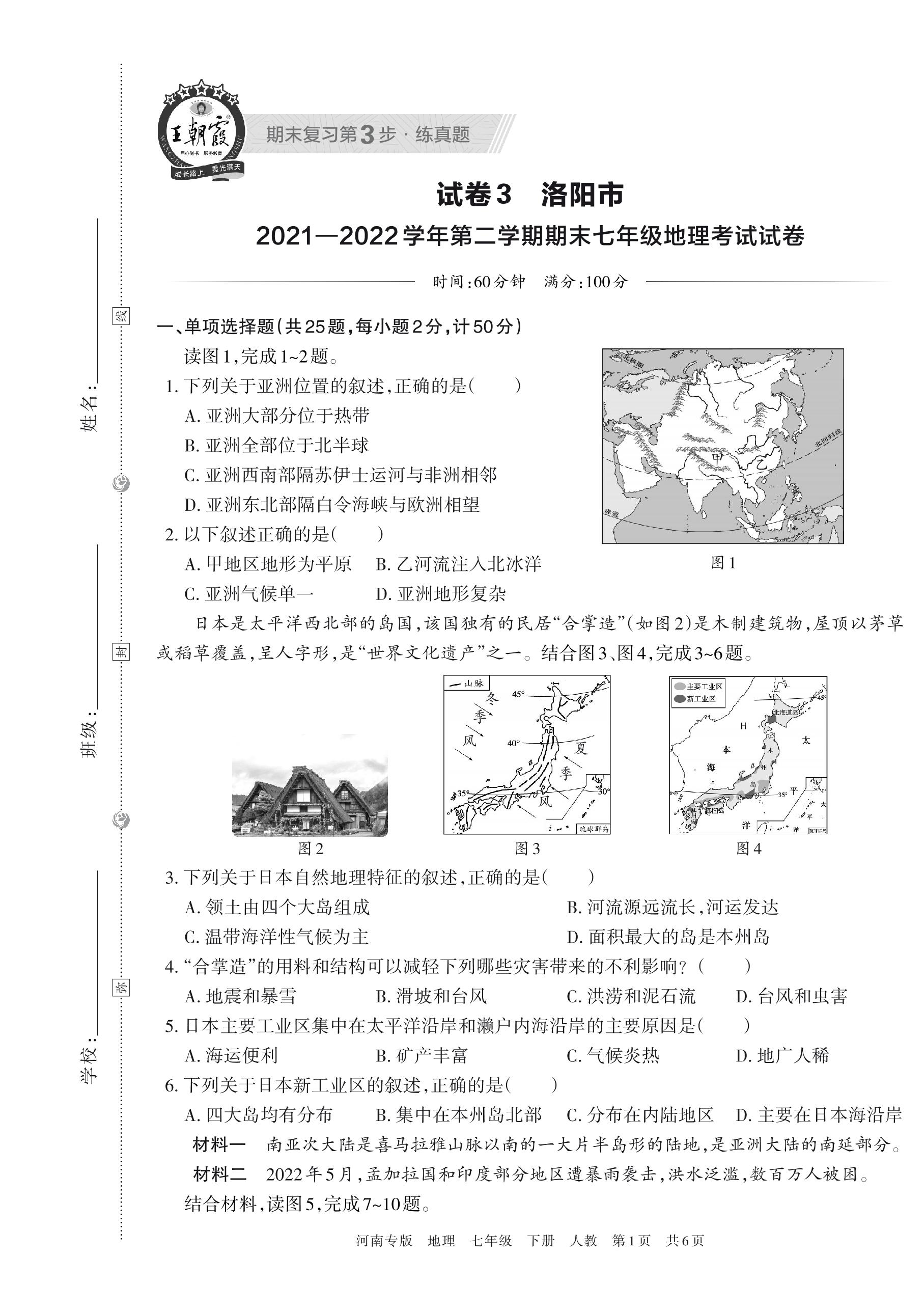 洛阳市2021—2022学年第二学期期末七年级地理考试试卷(人教版)【3】