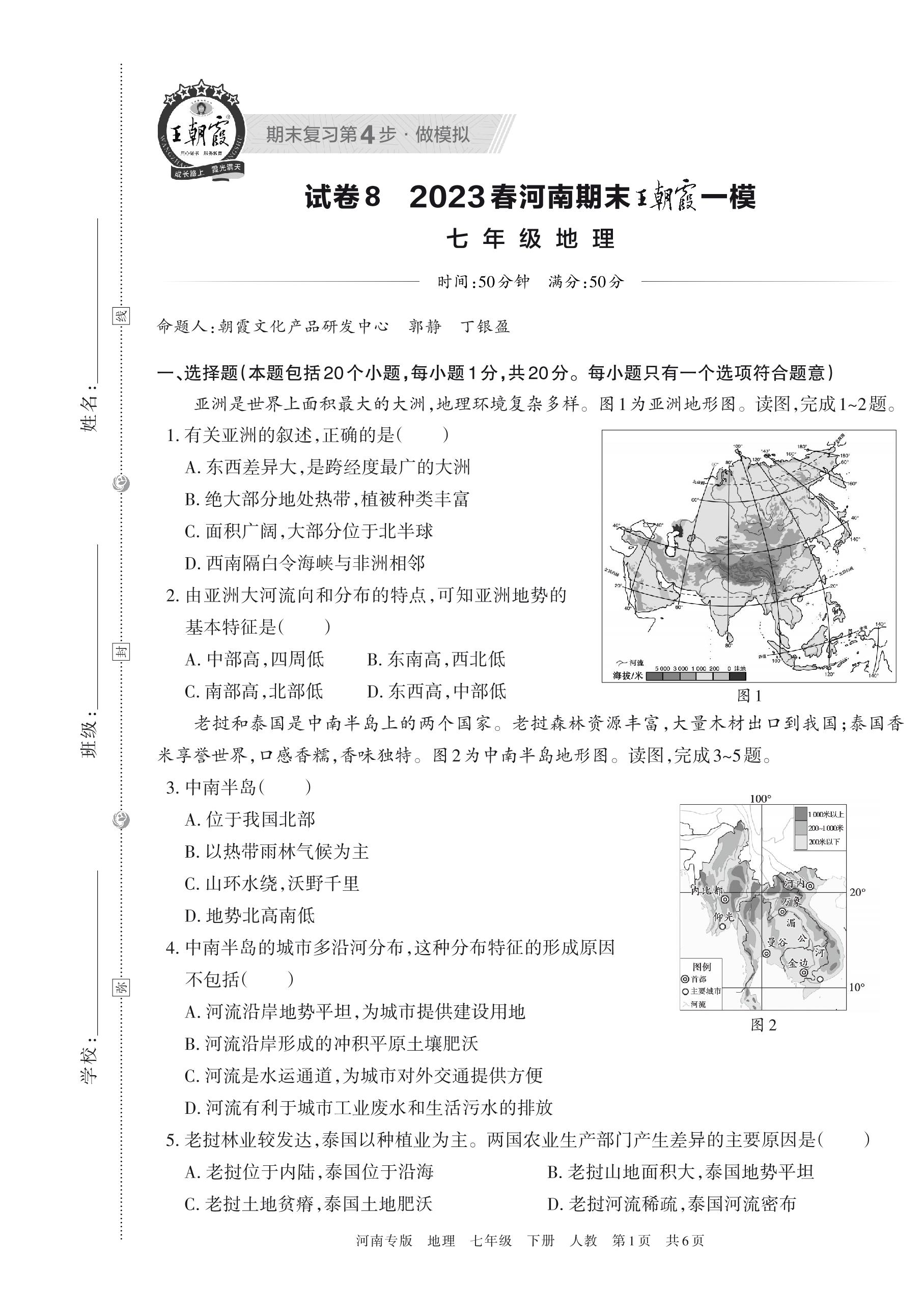 王朝霞期末模拟卷七年级下册地理(人教版)_R230619091229365【8】