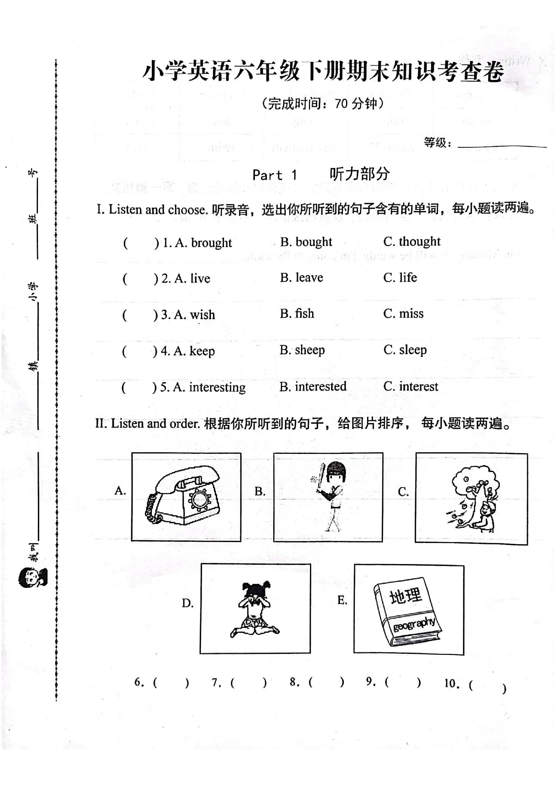 福建省晋江市2022-2023学年下学期期末试卷六年级英语