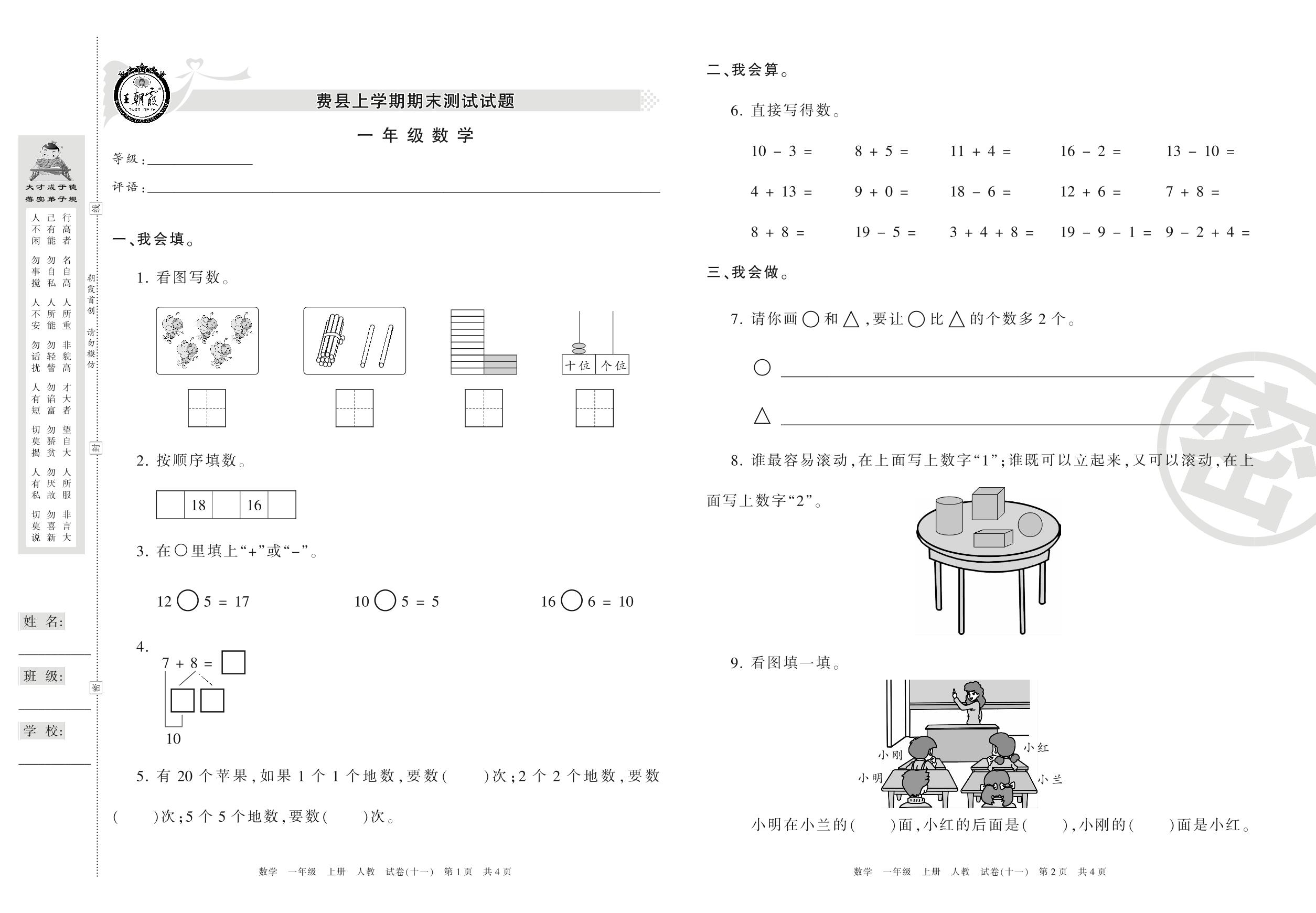 2016-2017学年第一学期临沂市费县一年级数学试卷(人教版)【11】