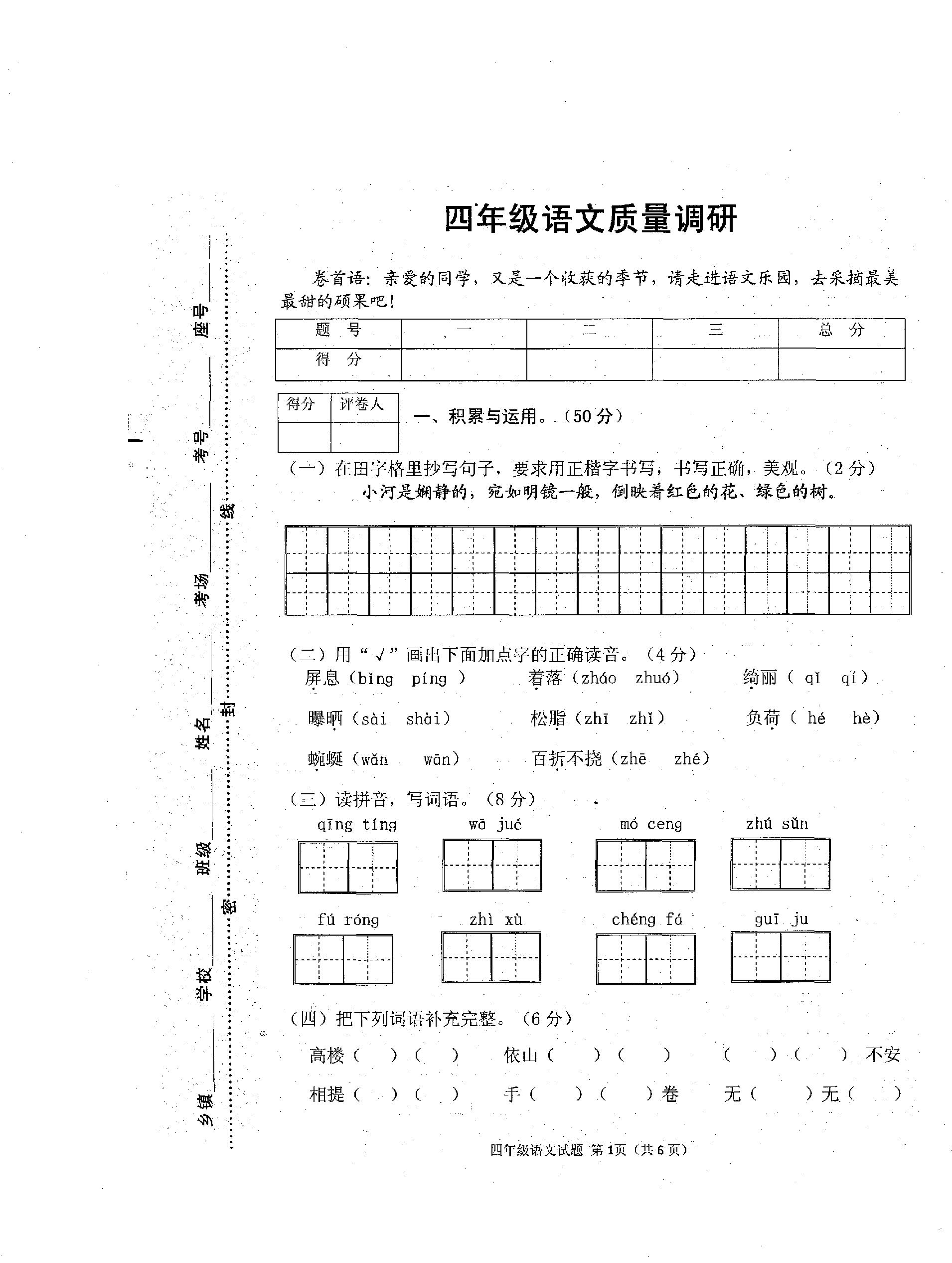 四年级语文人教版下册期末卷