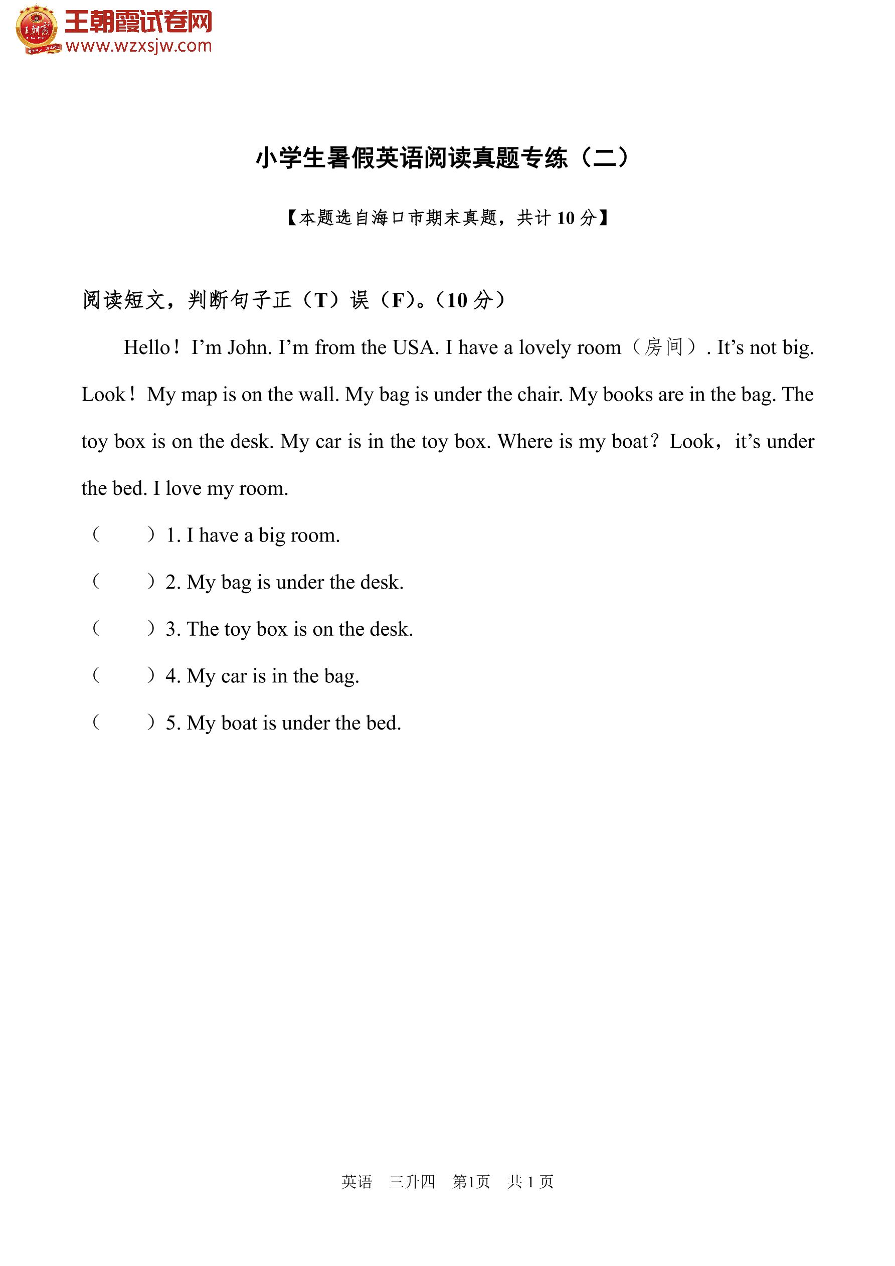 【三升四】小学生暑假英语阅读真题专练(二)