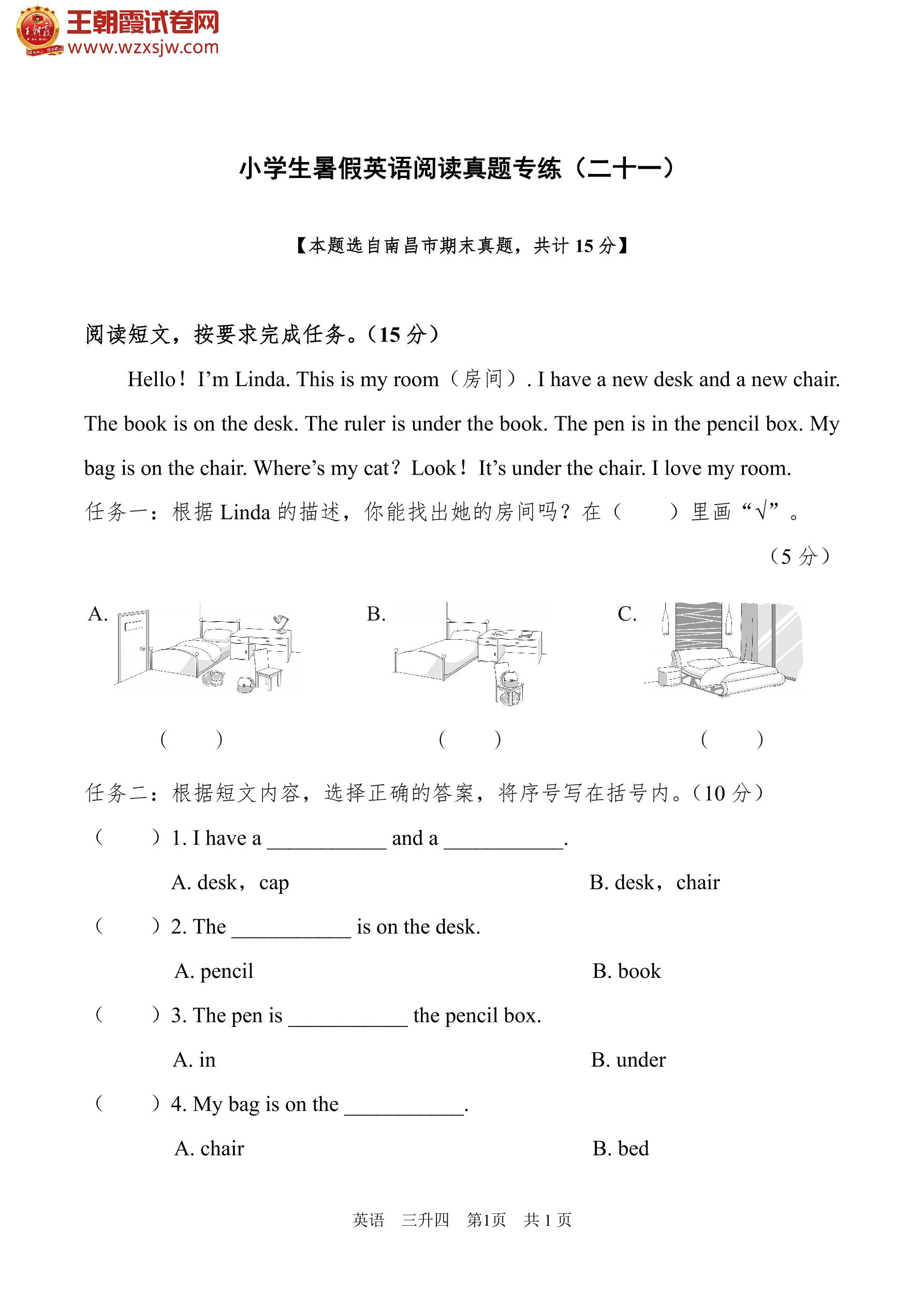 【三升四】小学生暑假英语阅读真题专练(二十一)