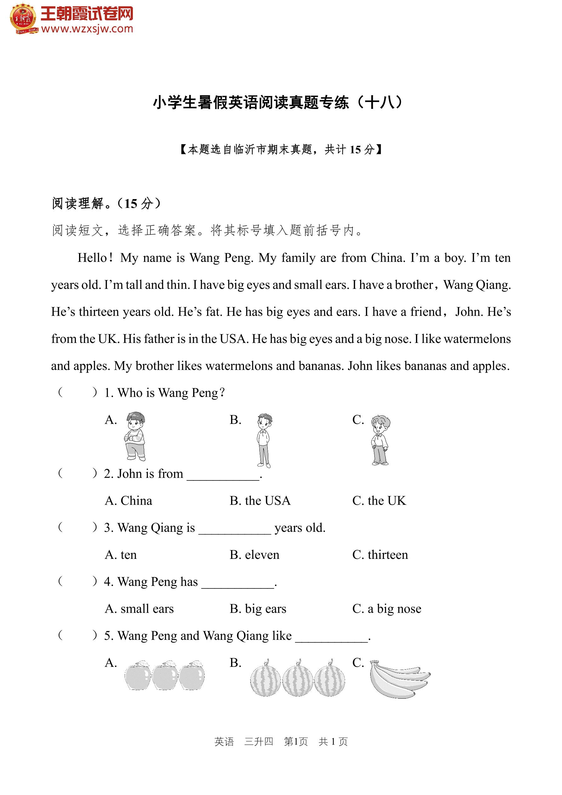 【三升四】小学生暑假英语阅读真题专练(十八)