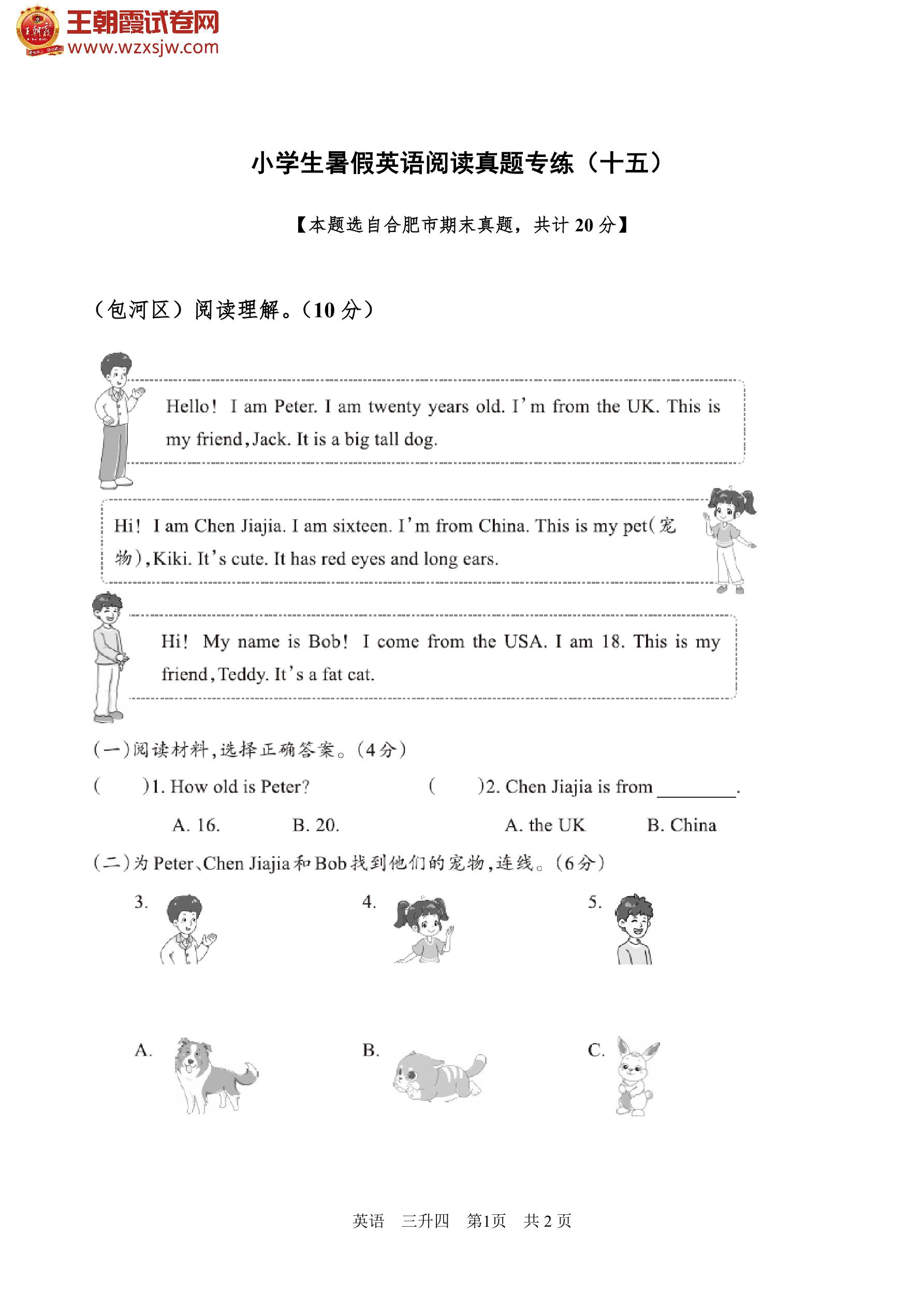 【三升四】小学生暑假英语阅读真题专练(十五)
