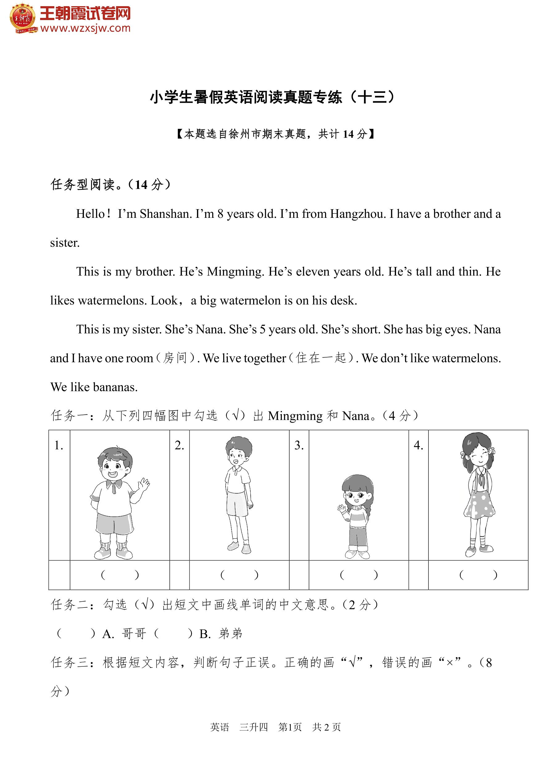【三升四】小学生暑假英语阅读真题专练(十三)
