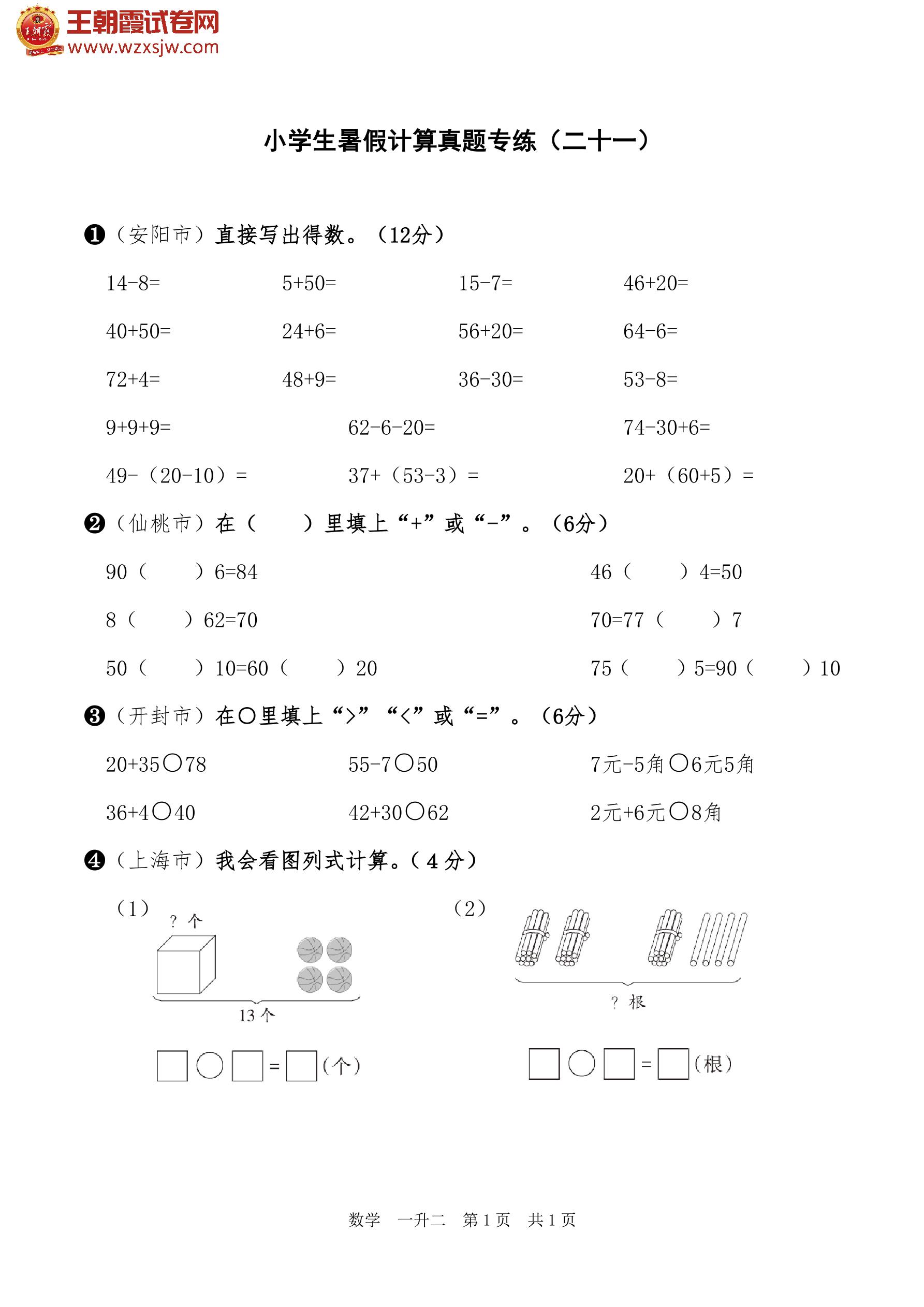 一年级数学通用版下册专项卷