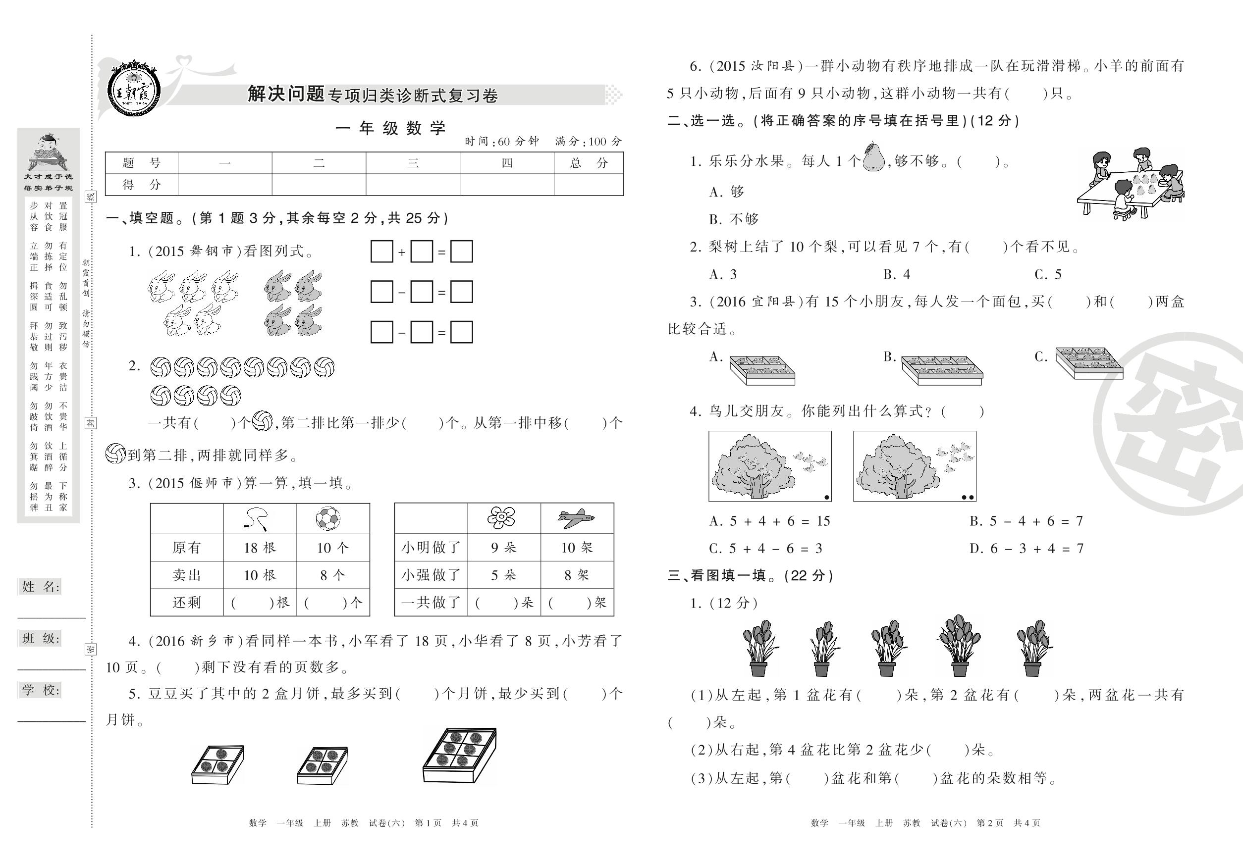 王朝霞期末专项卷一年级上册数学(苏教版)【6】