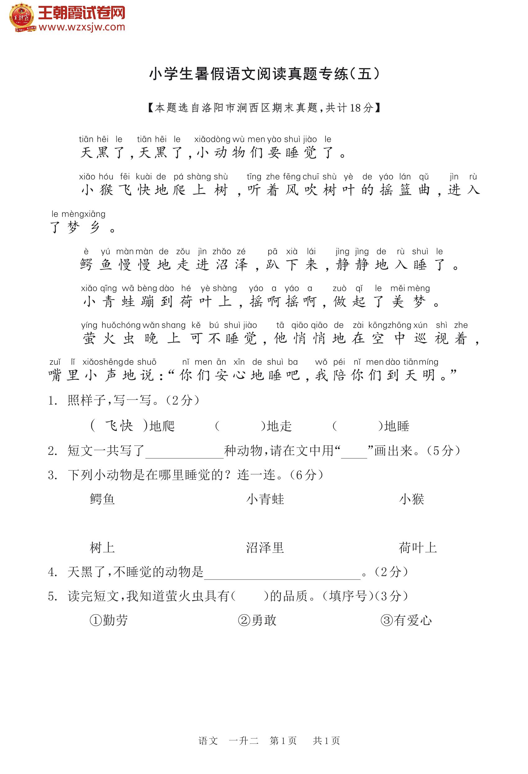 【一升二】小学生暑假语文阅读真题专练(五)
