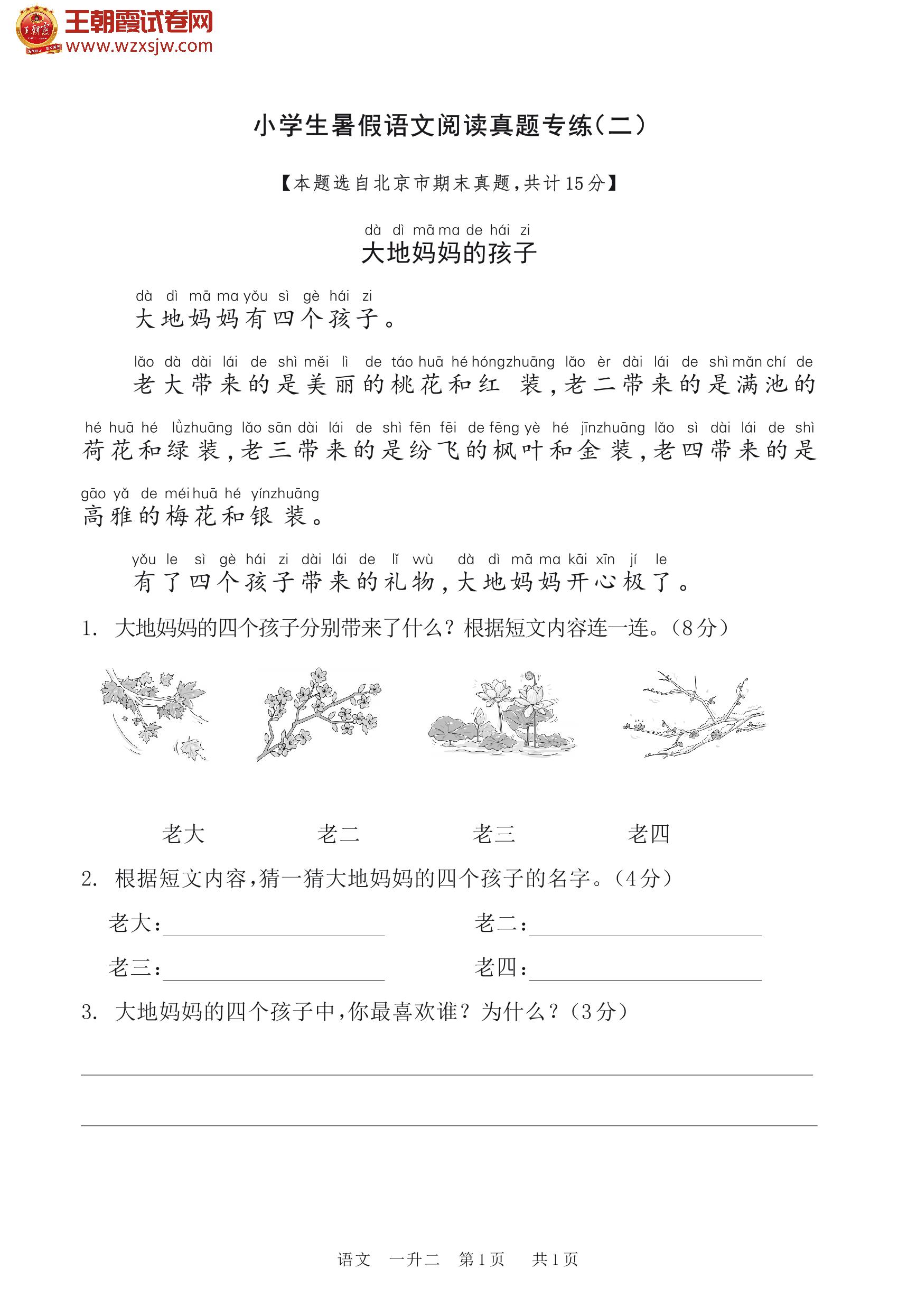 【一升二】小学生暑假语文阅读真题专练(二)