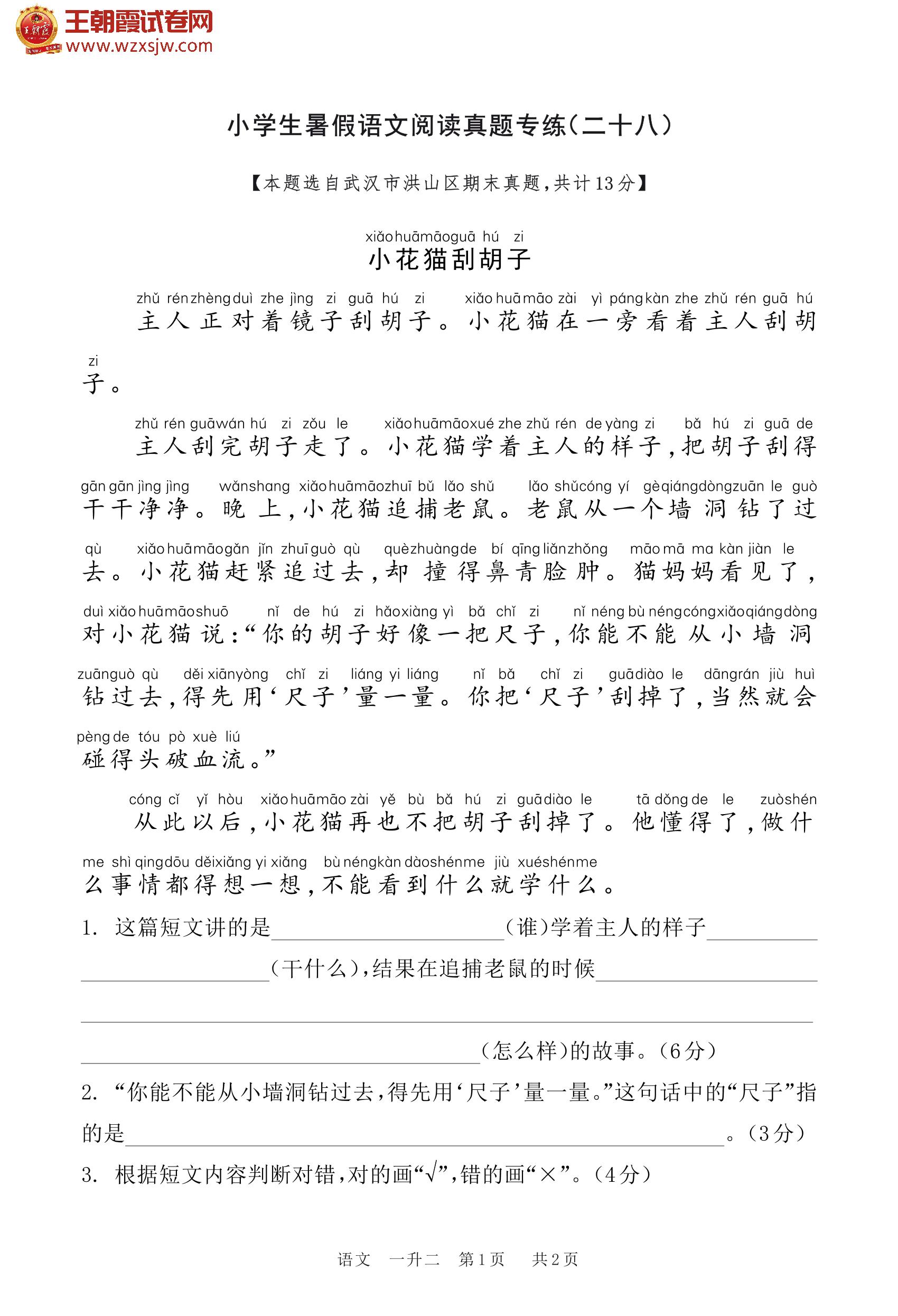 【一升二】小学生暑假语文阅读真题专练(二十八)