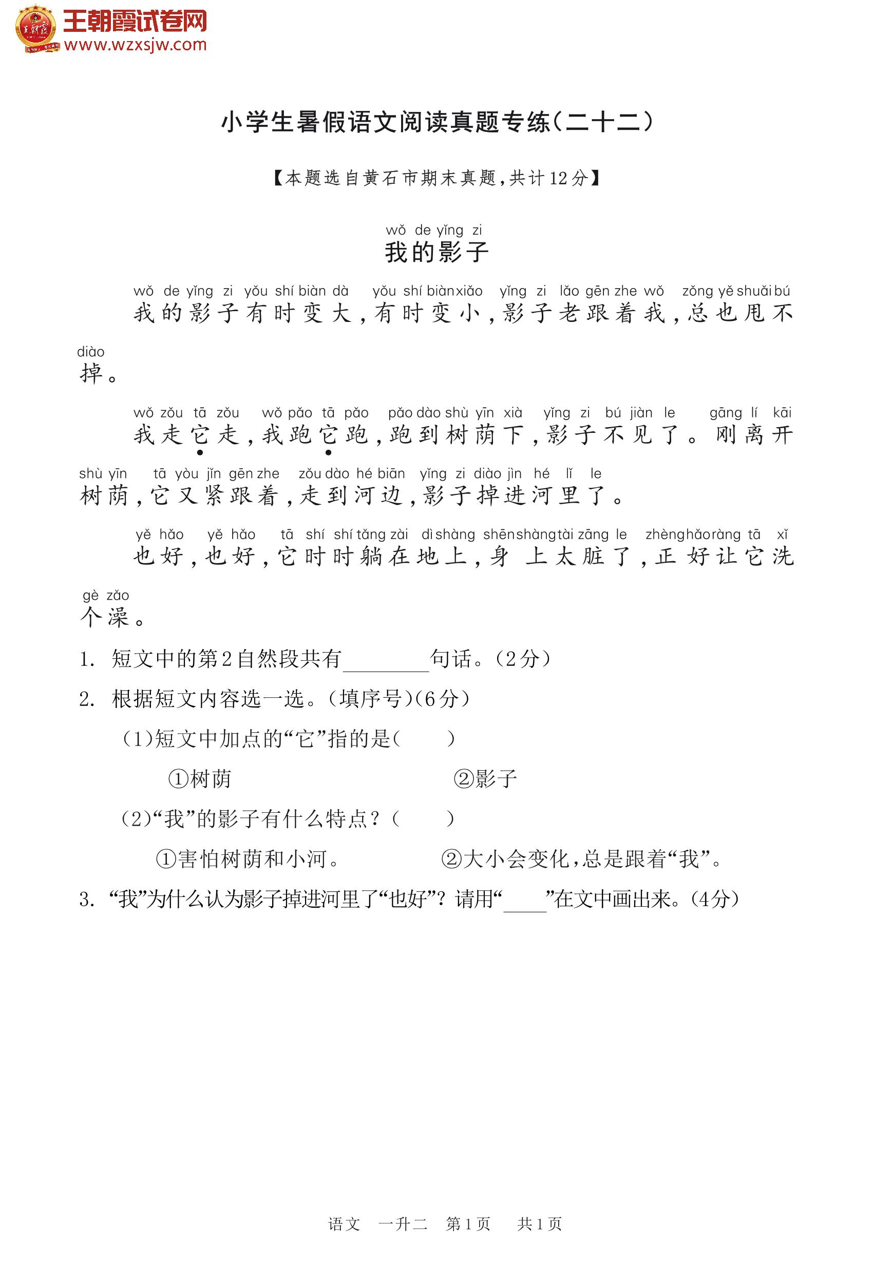 【一升二】小学生暑假语文阅读真题专练(二十二)