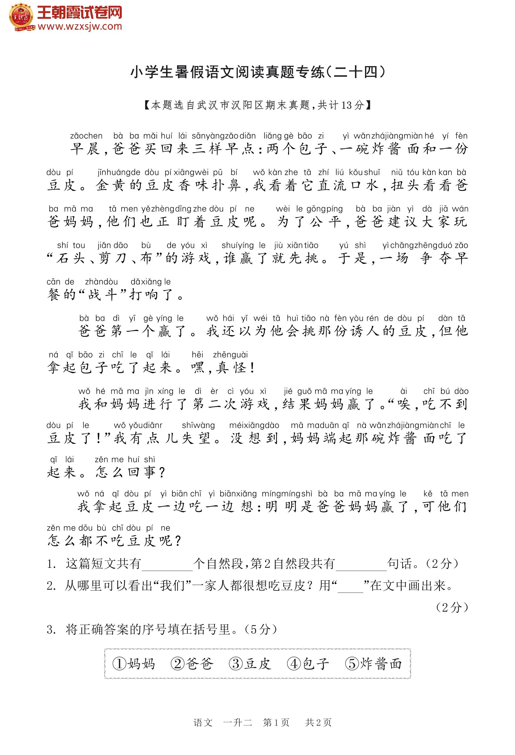 【一升二】小学生暑假语文阅读真题专练(二十四)