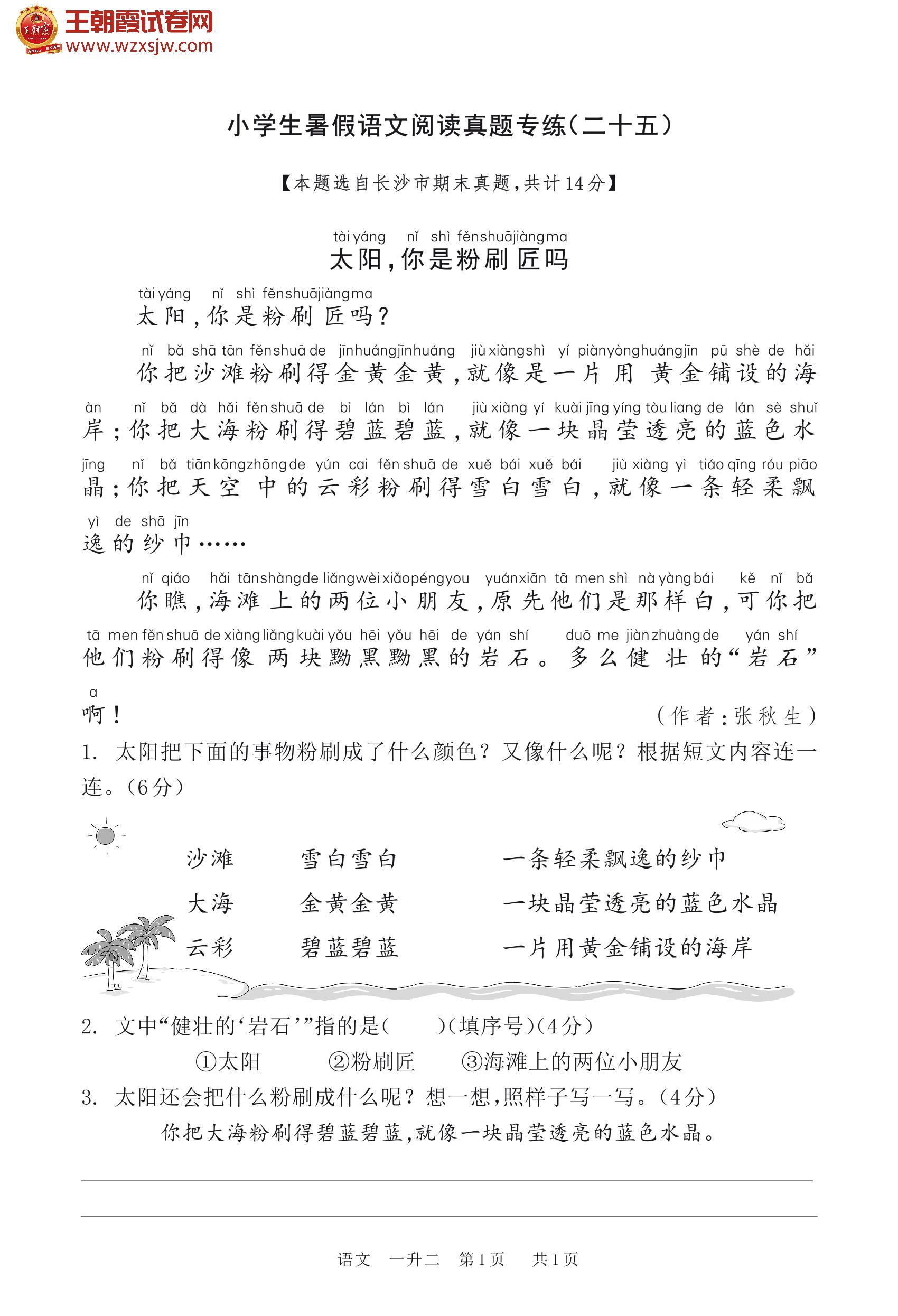 【一升二】小学生暑假语文阅读真题专练(二十五)
