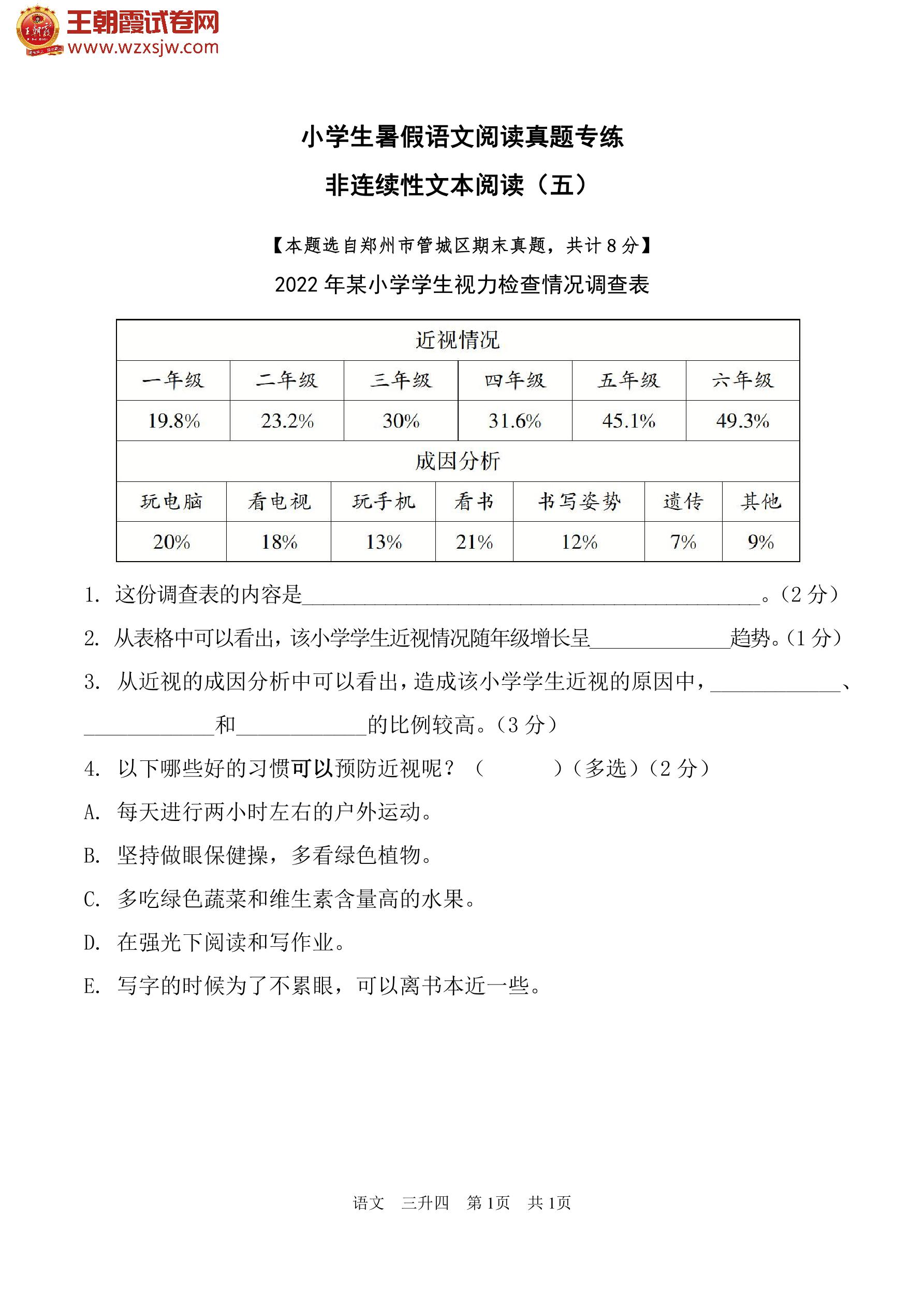 【三升四】小学生暑假语文阅读真题专练——非连续性文本阅读(五)