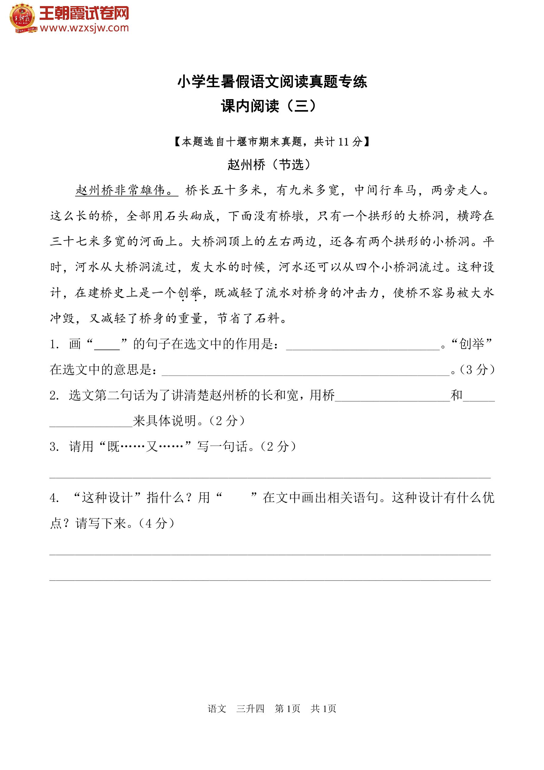 【三升四】小学生暑假语文阅读真题专练——课内阅读(三)