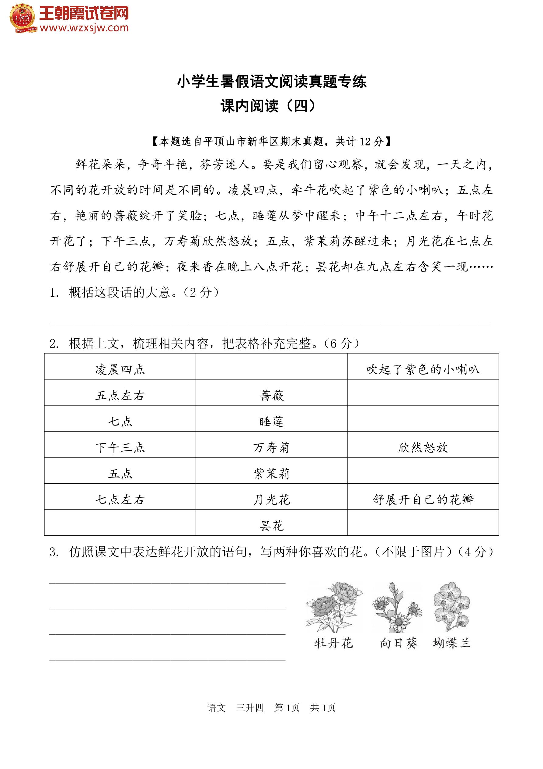 【三升四】小学生暑假语文阅读真题专练——课内阅读(四)