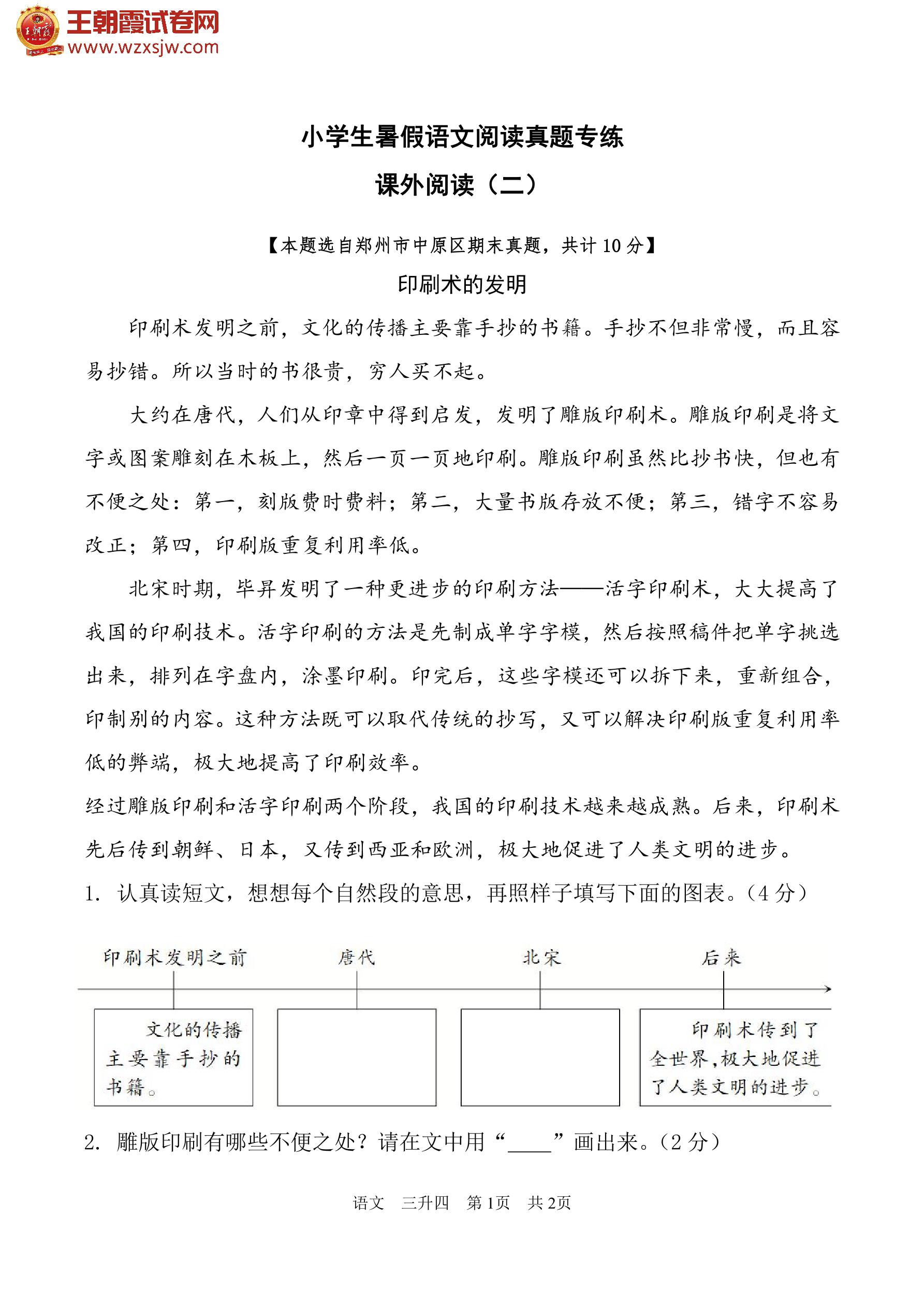 【三升四】小学生暑假语文阅读真题专练——课外阅读(二)