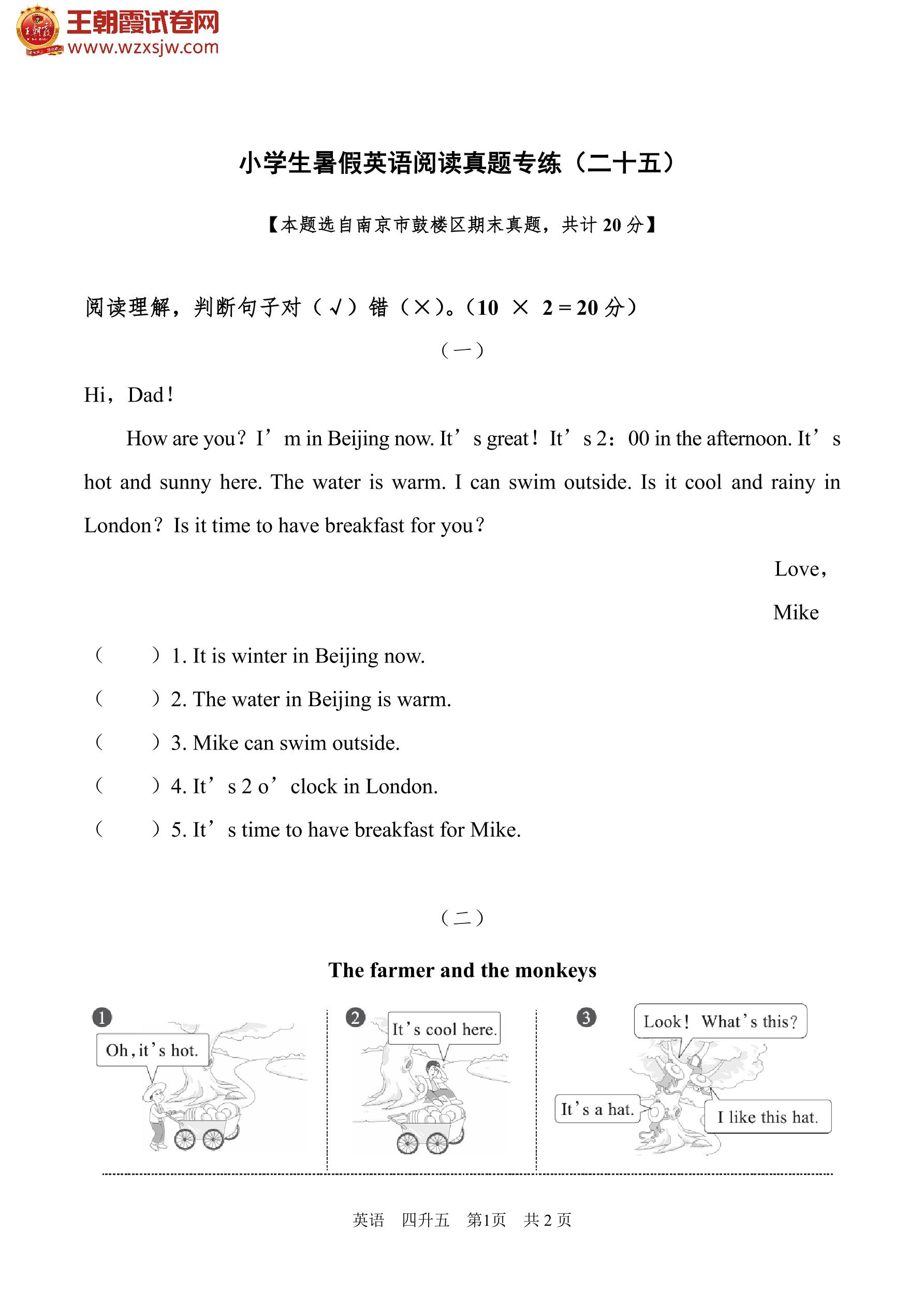 【四升五】小学生暑假英语阅读真题专练(二十五)