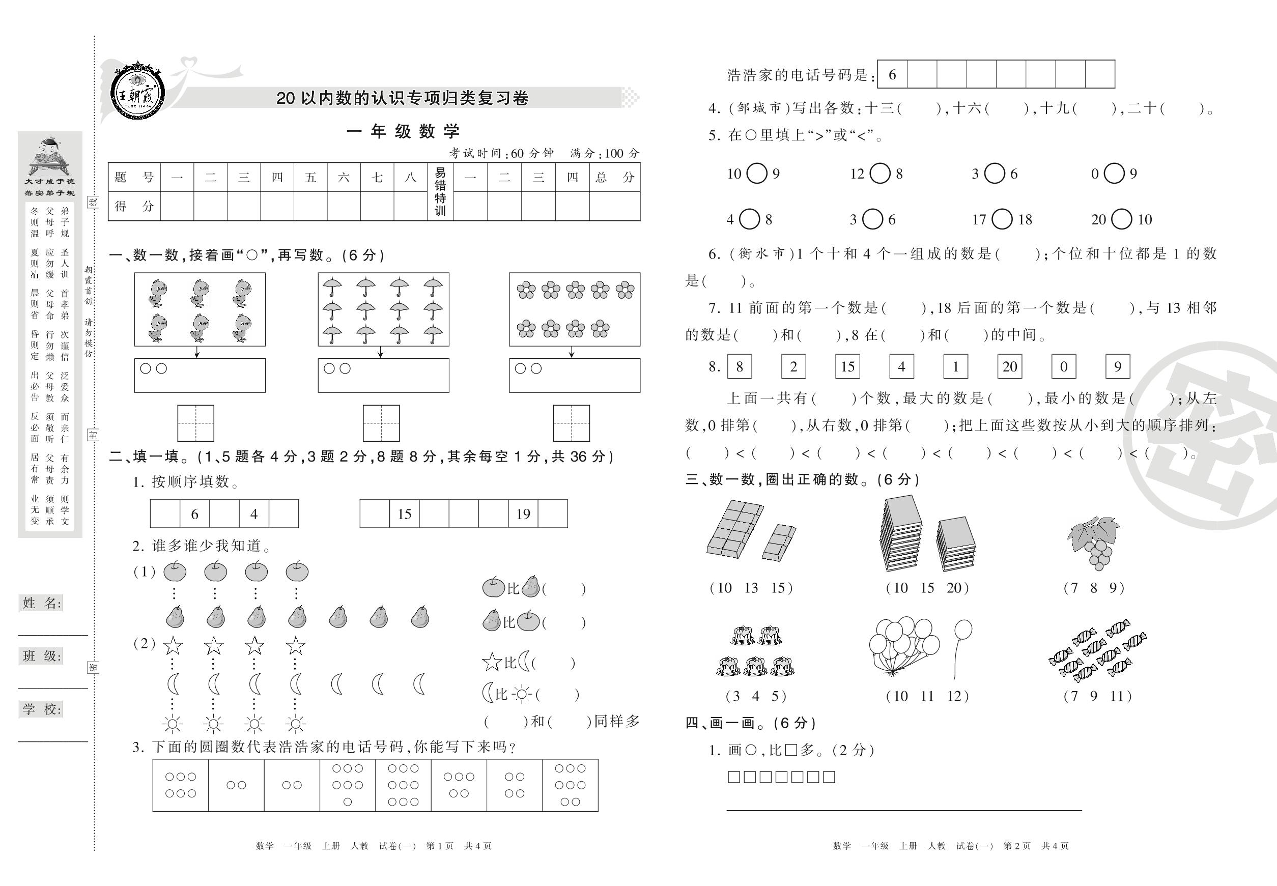 王朝霞期末专项卷一年级上册数学(人教版)_R210802223637【1】