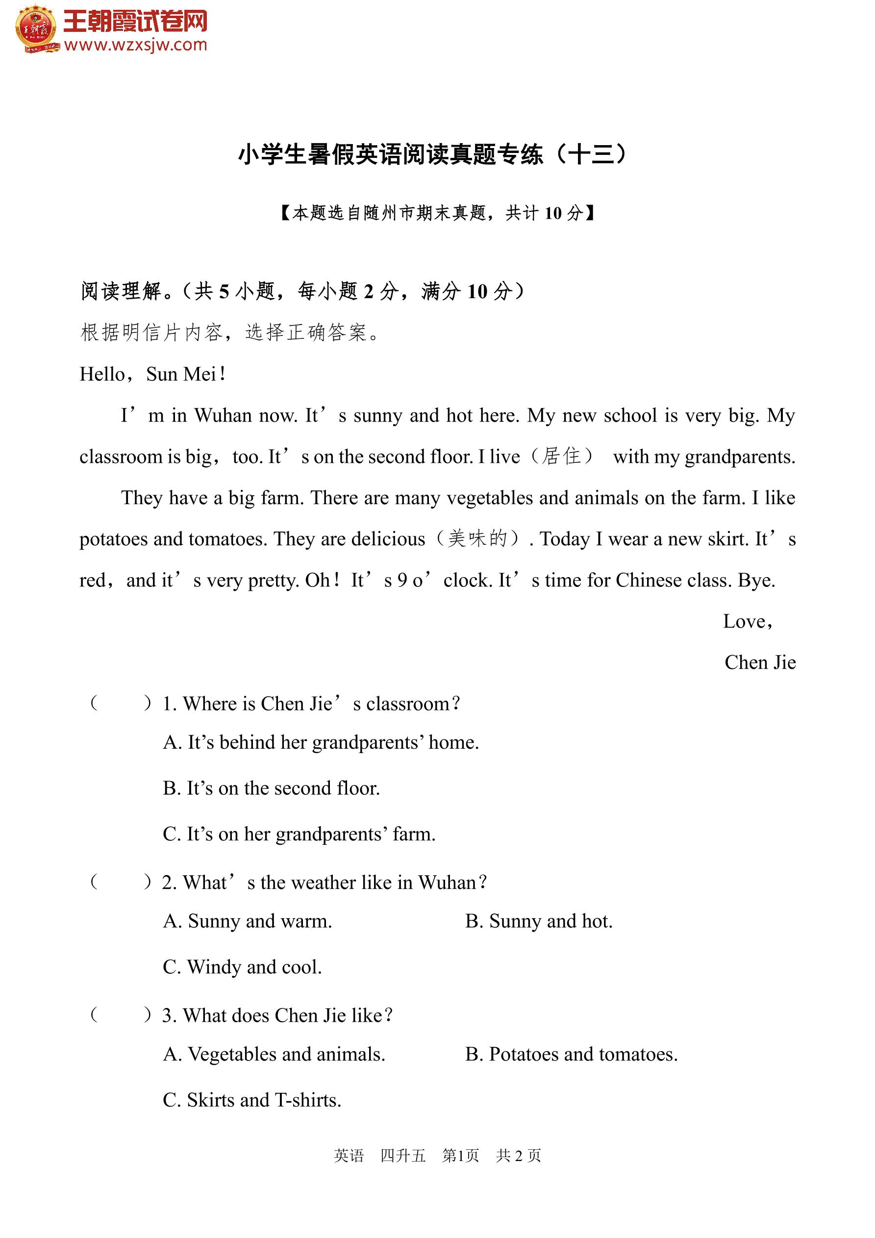 【四升五】小学生暑假英语阅读真题专练(十三)