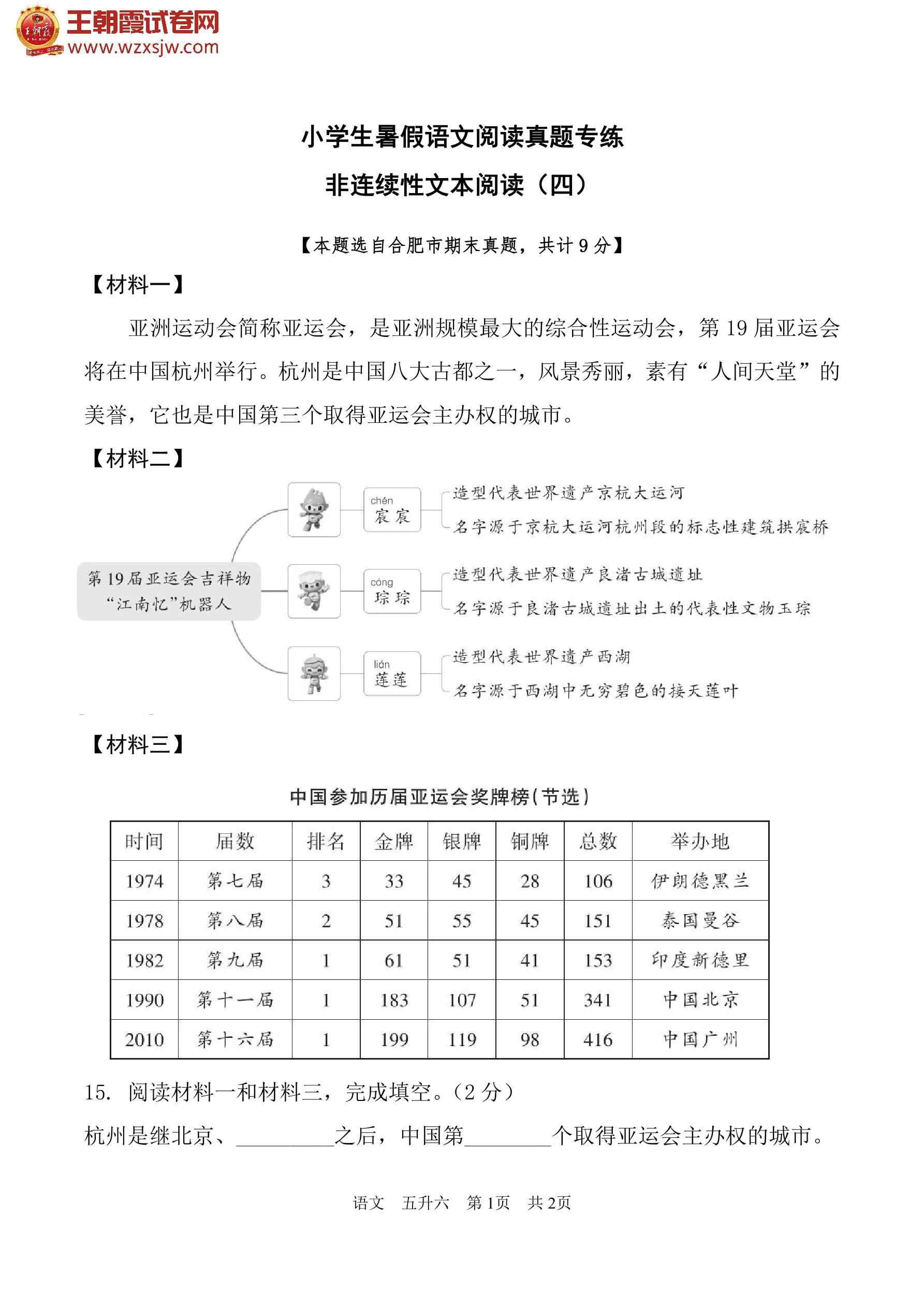 【五升六】小学生暑假语文阅读真题专练——非连续性文本阅读(四)