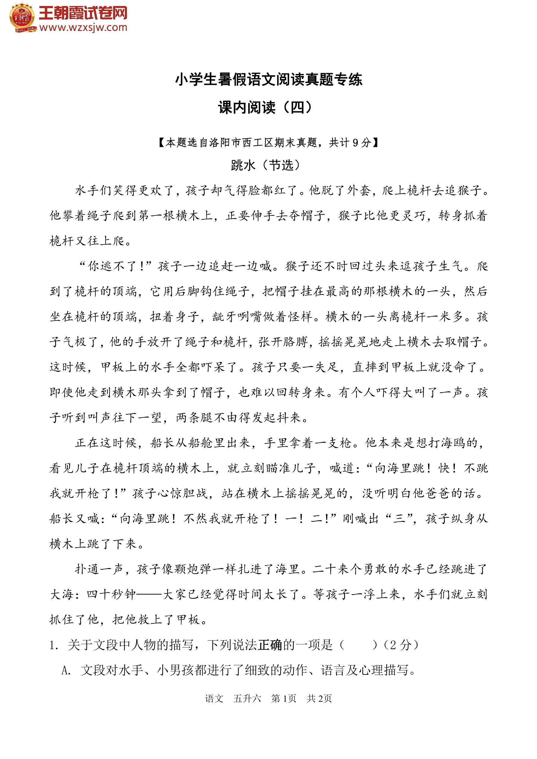 【五升六】小学生暑假语文阅读真题专练——课内阅读(四)