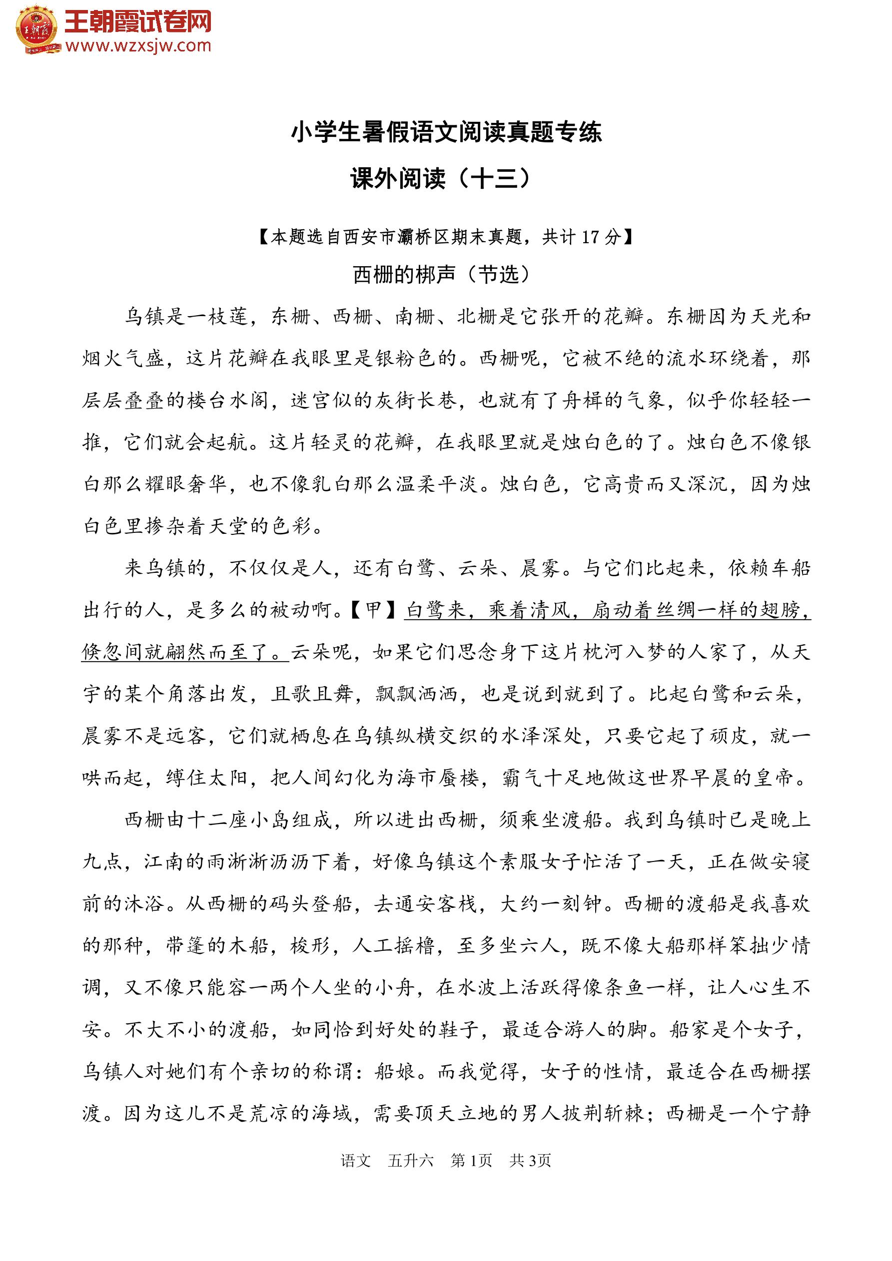 【五升六】小学生暑假语文阅读真题专练——课外阅读(十三)