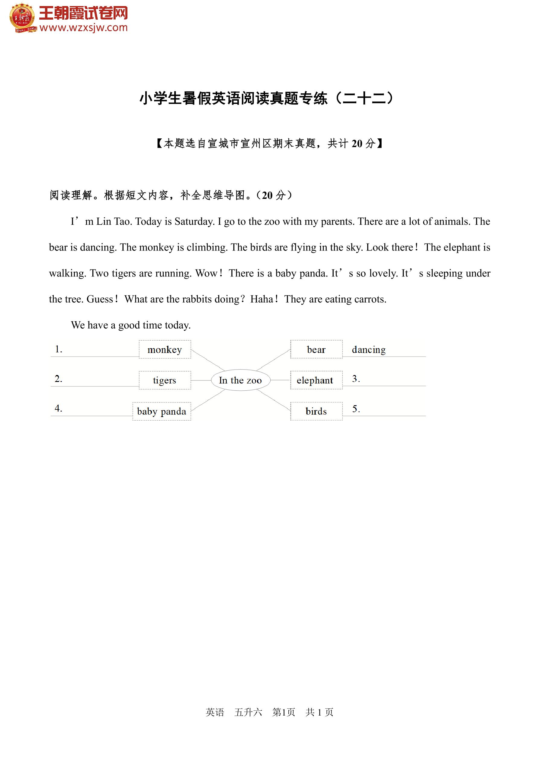 【五升六】小学生暑假英语阅读真题专练(二十二)