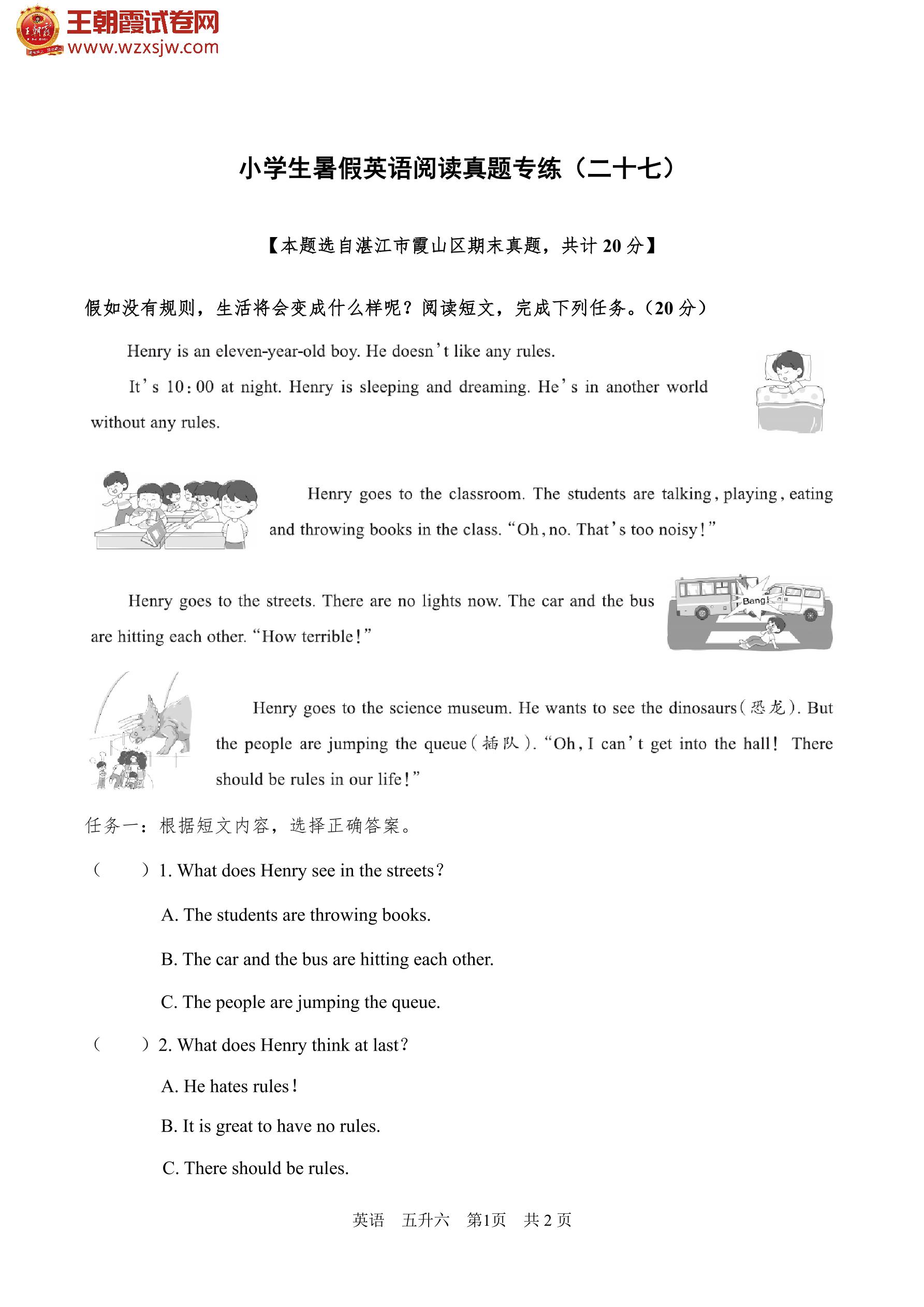 【五升六】小学生暑假英语阅读真题专练(二十七)