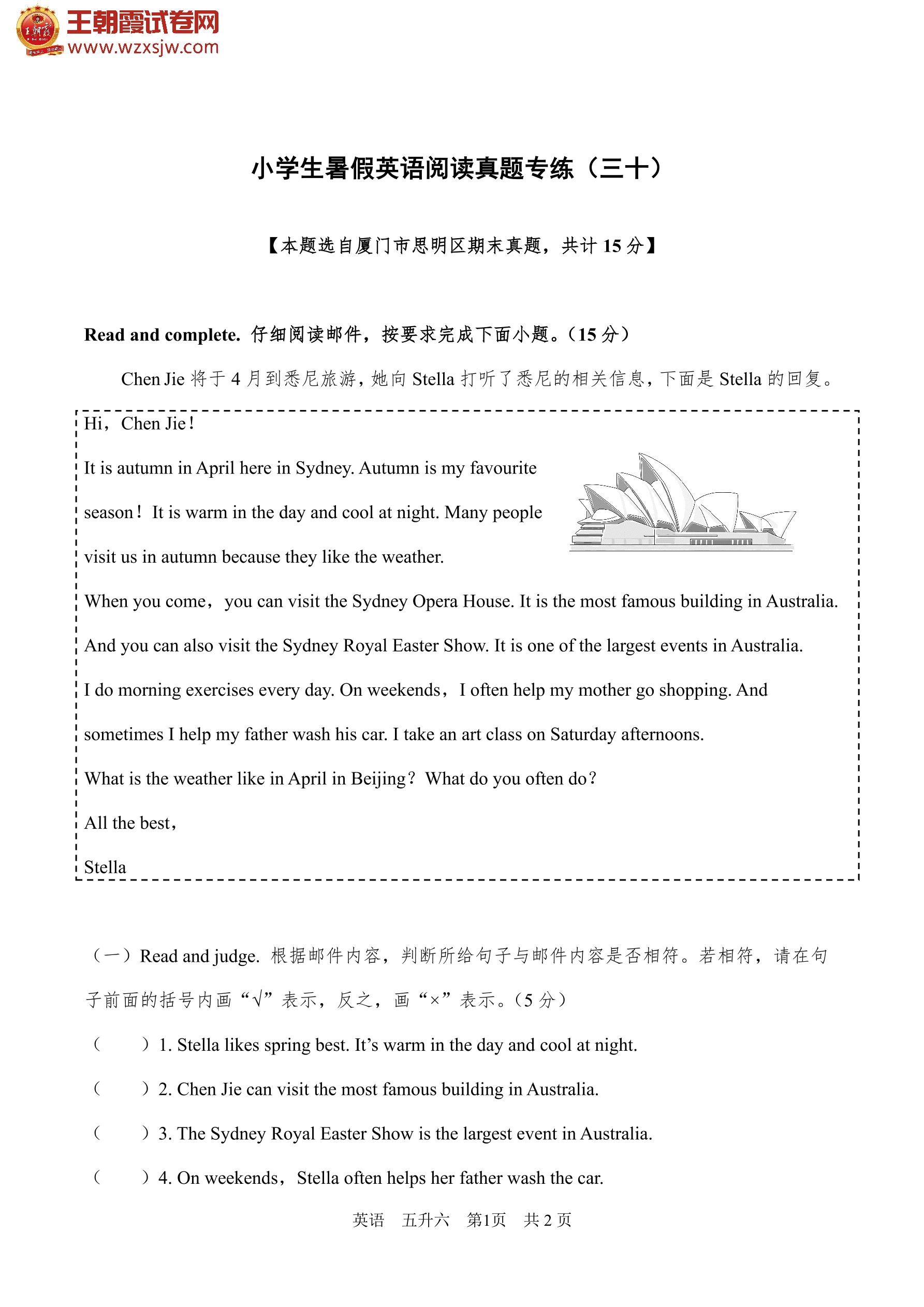 【五升六】小学生暑假英语阅读真题专练(三十)