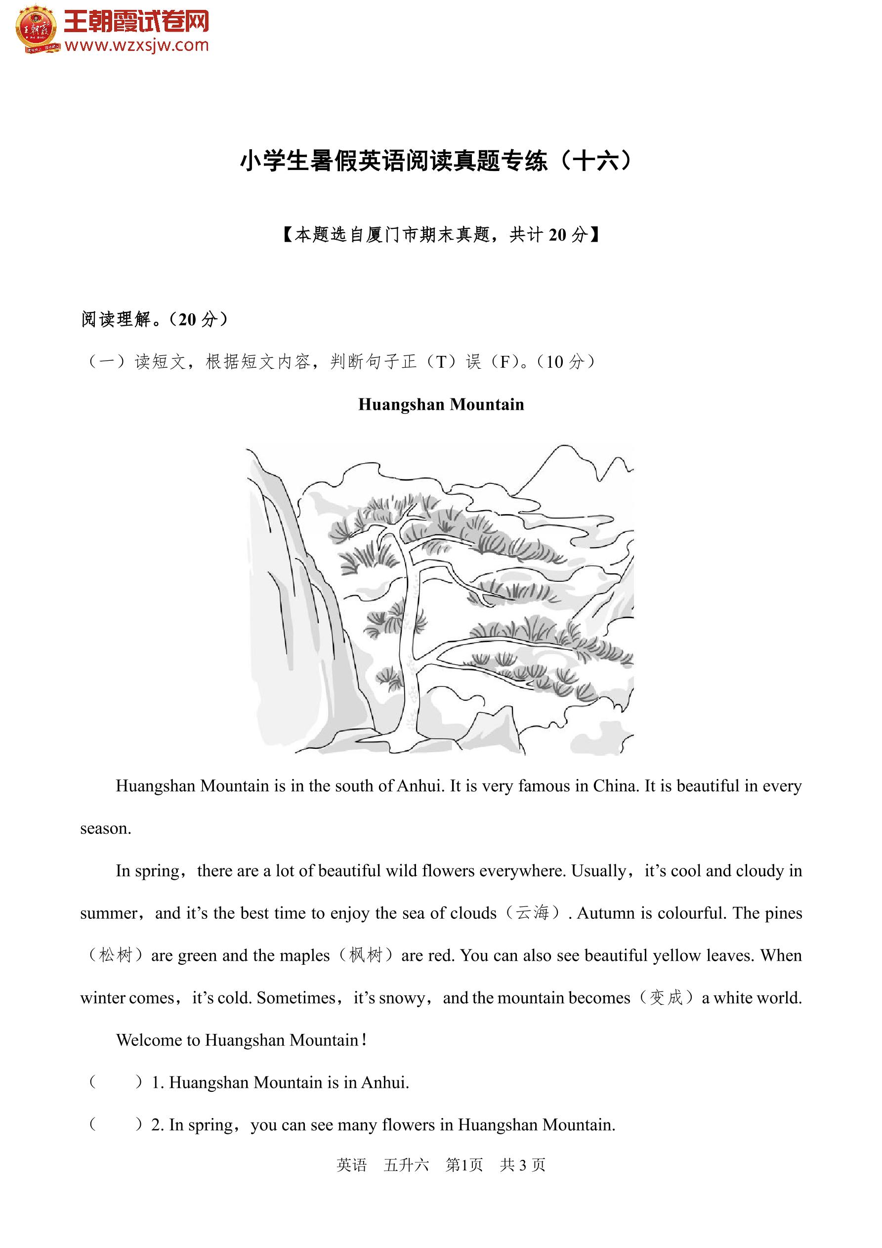 【五升六】小学生暑假英语阅读真题专练(十六)