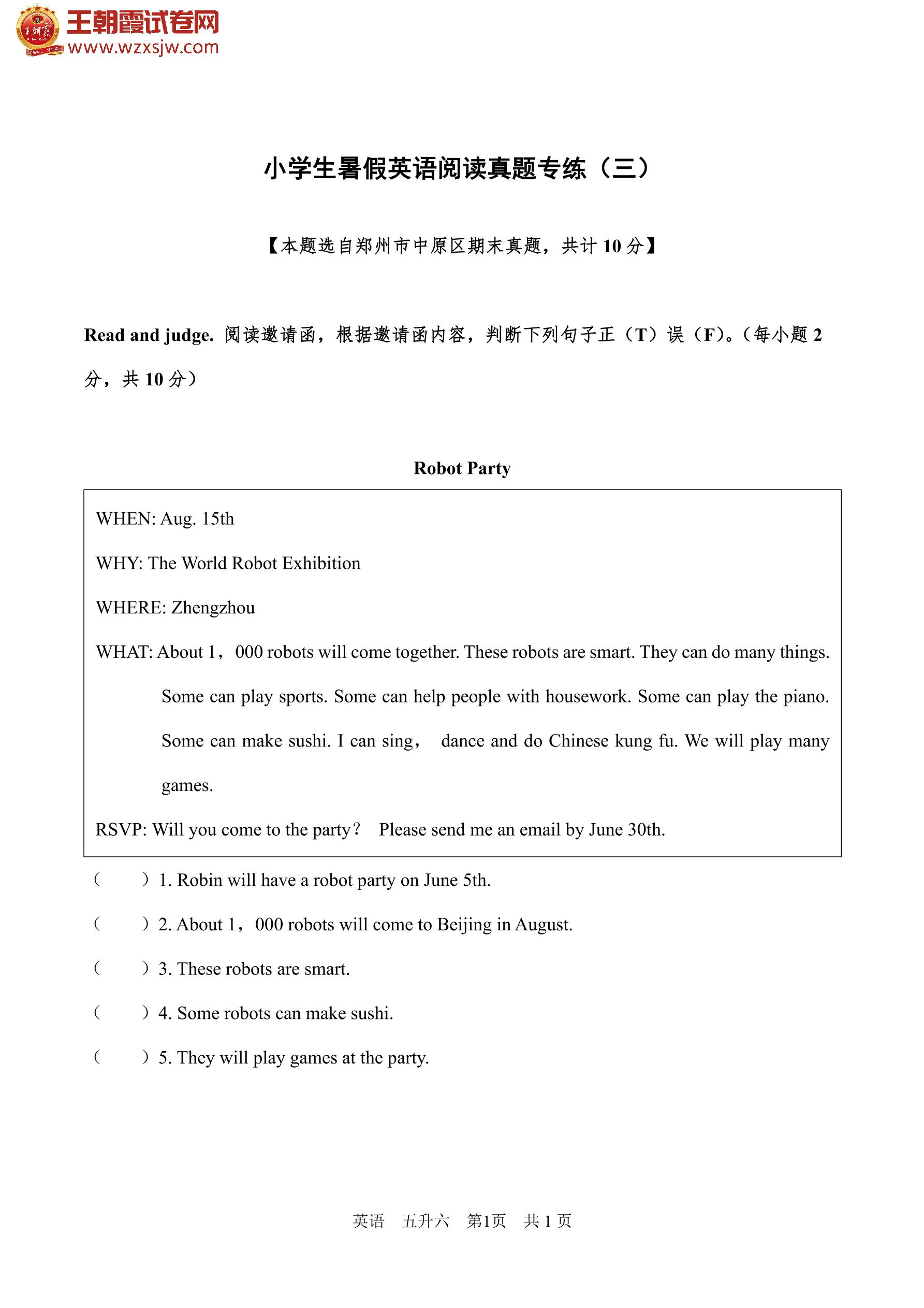 【五升六】小学生暑假英语阅读真题专练(三)
