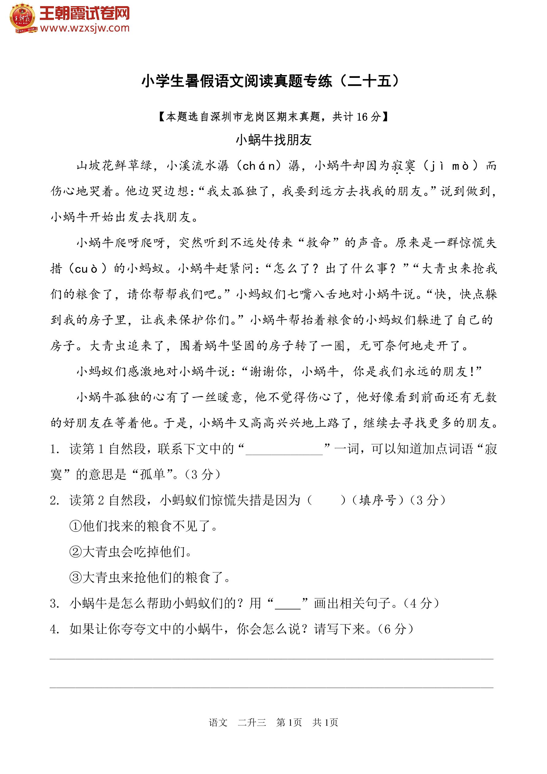 【二升三】小学生暑假语文阅读真题专练(二十五)
