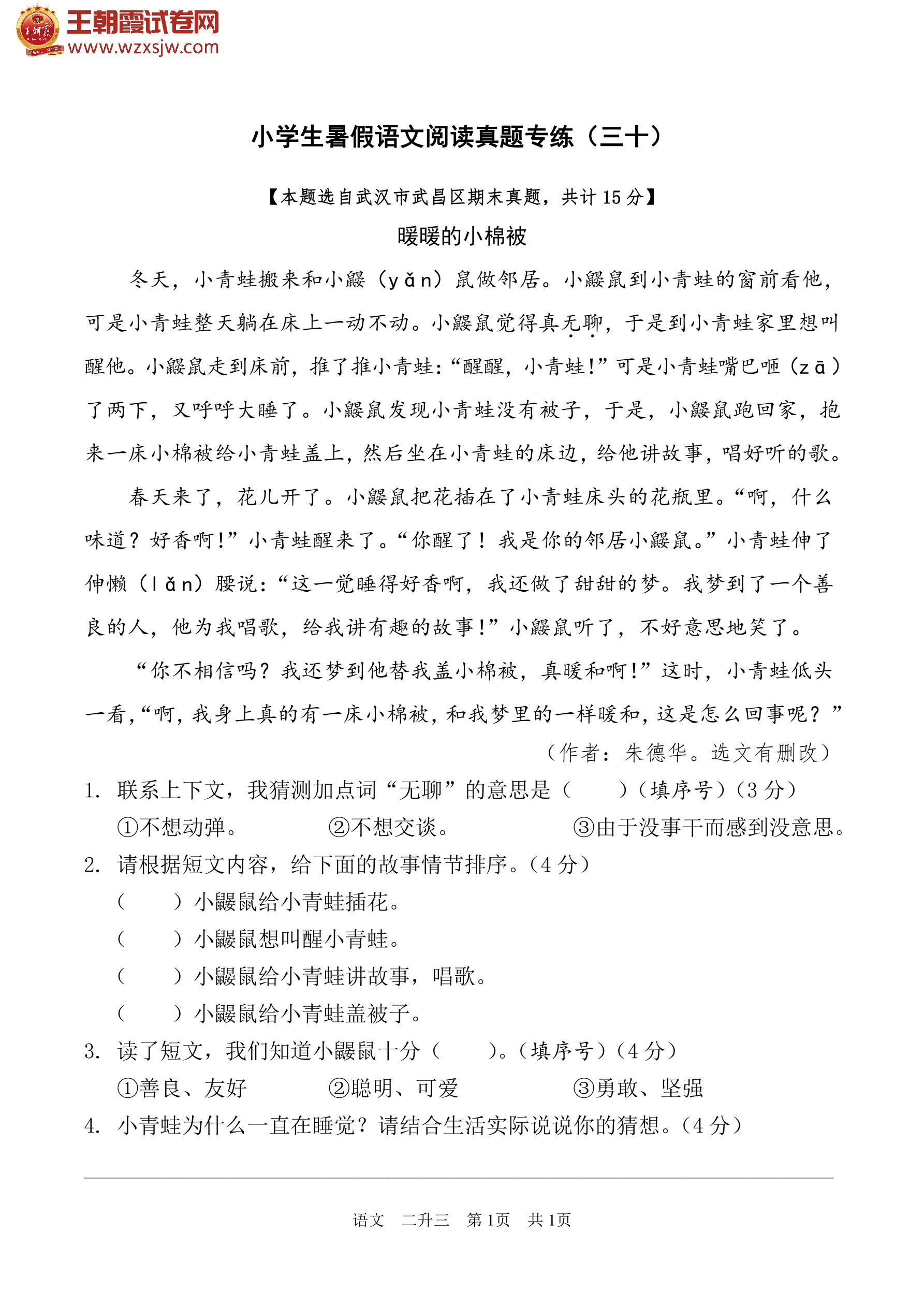 【二升三】小学生暑假语文阅读真题专练(三十)