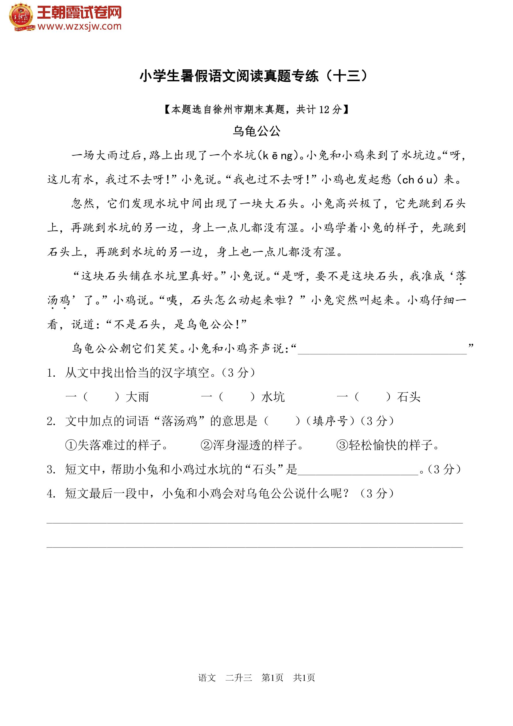 【二升三】小学生暑假语文阅读真题专练(十三)
