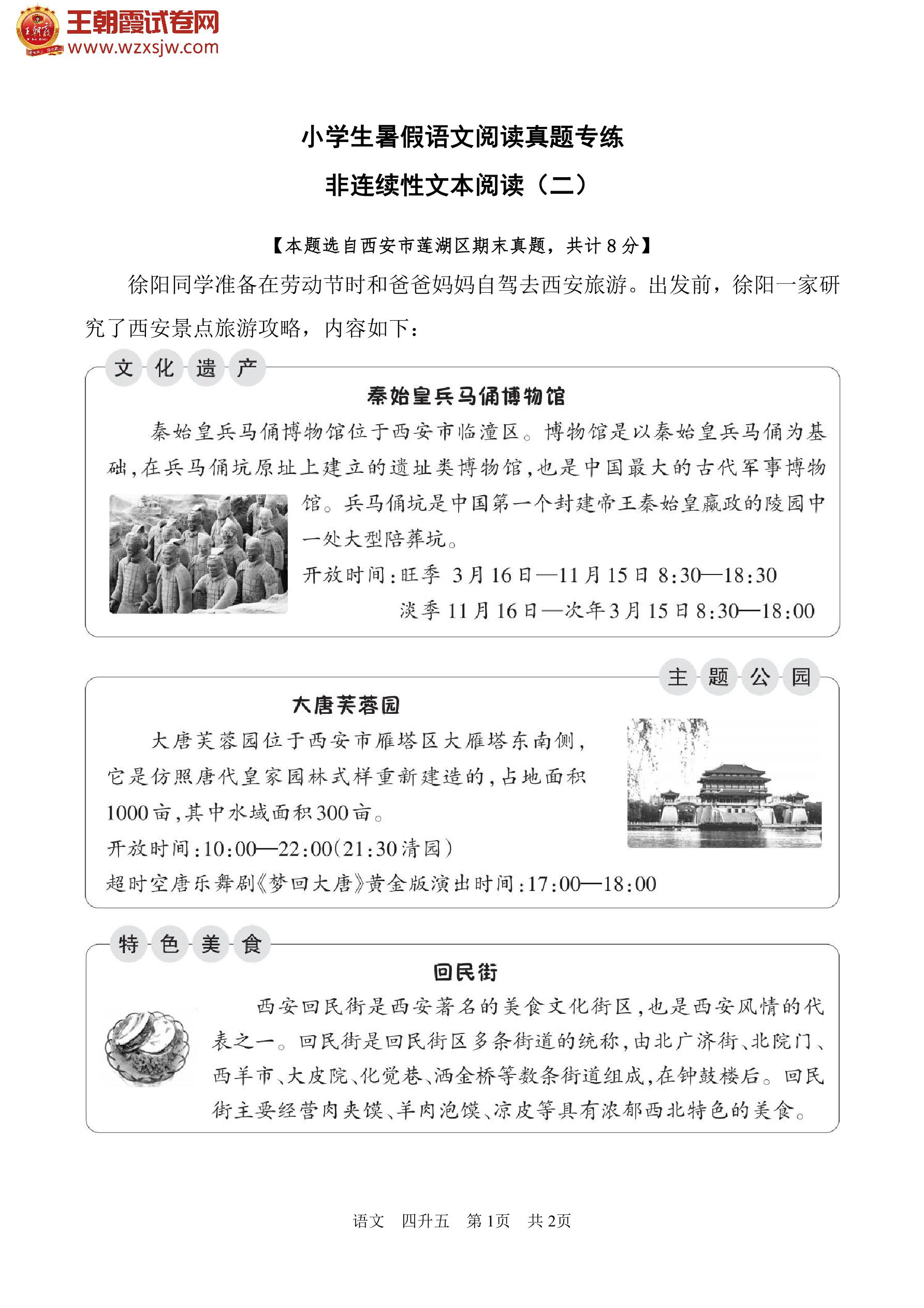 【四升五】小学生暑假语文阅读真题专练——非连续性文本阅读(二)