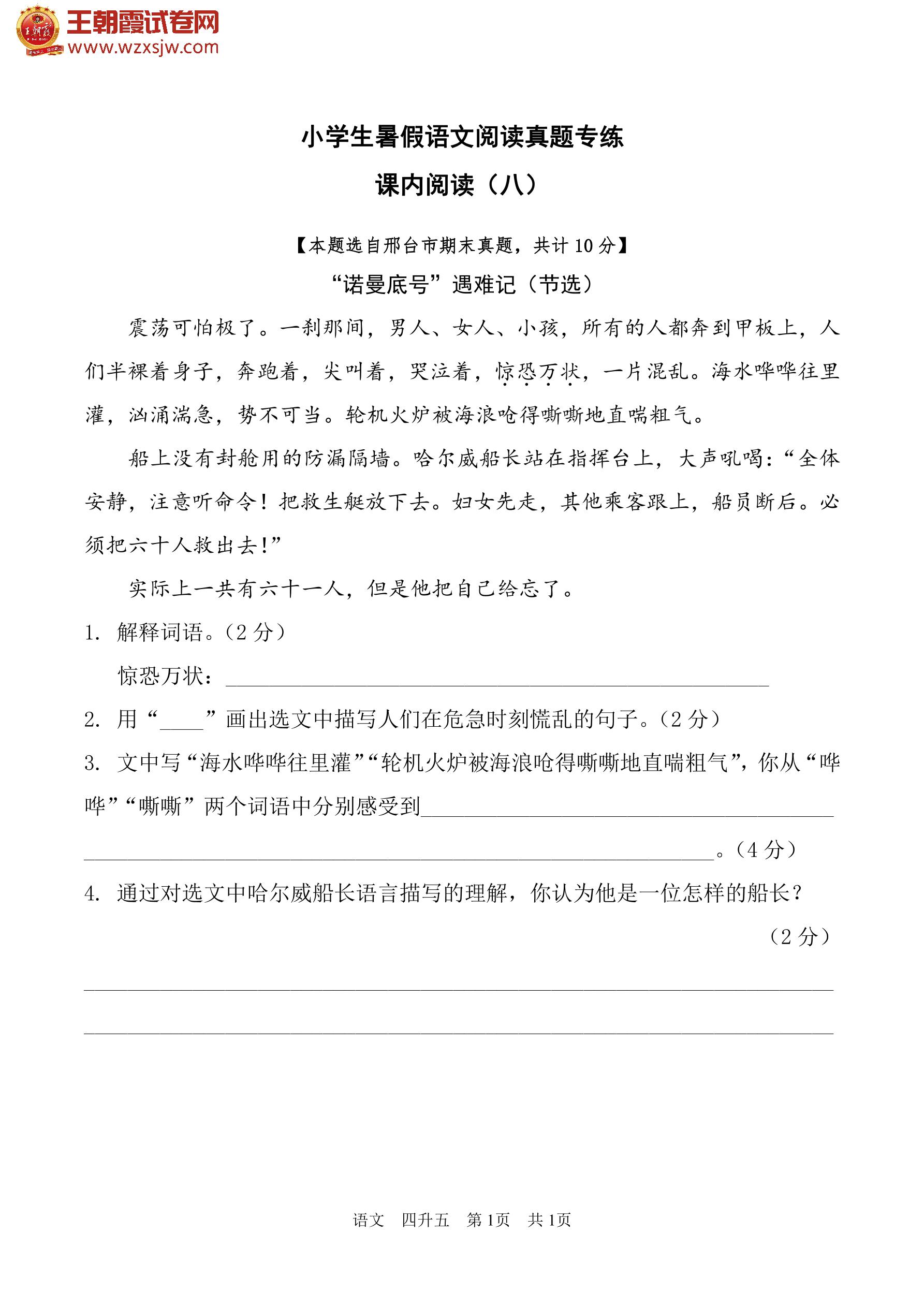 【四升五】小学生暑假语文阅读真题专练——课内阅读(八)