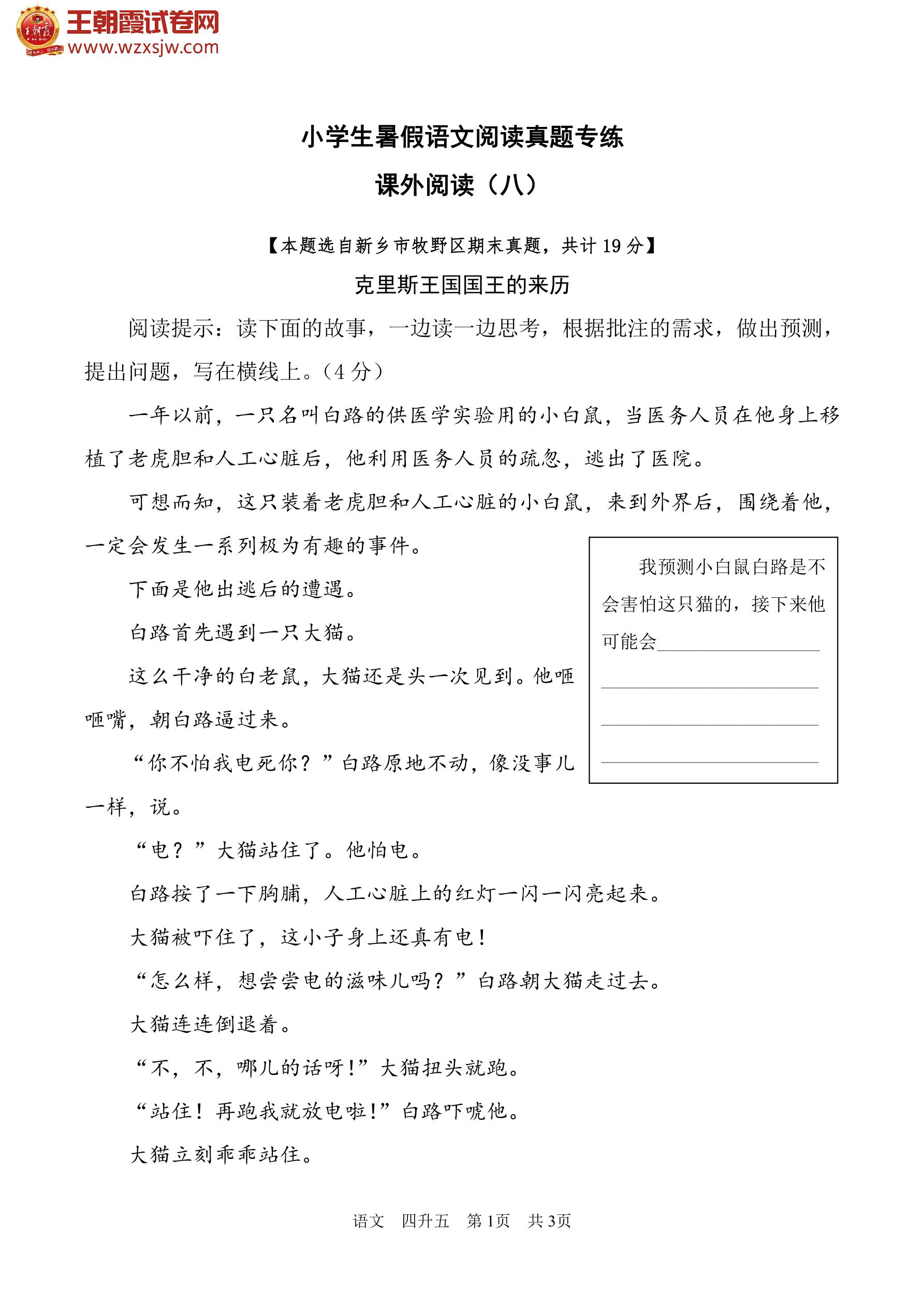【四升五】小学生暑假语文阅读真题专练——课外阅读(八)