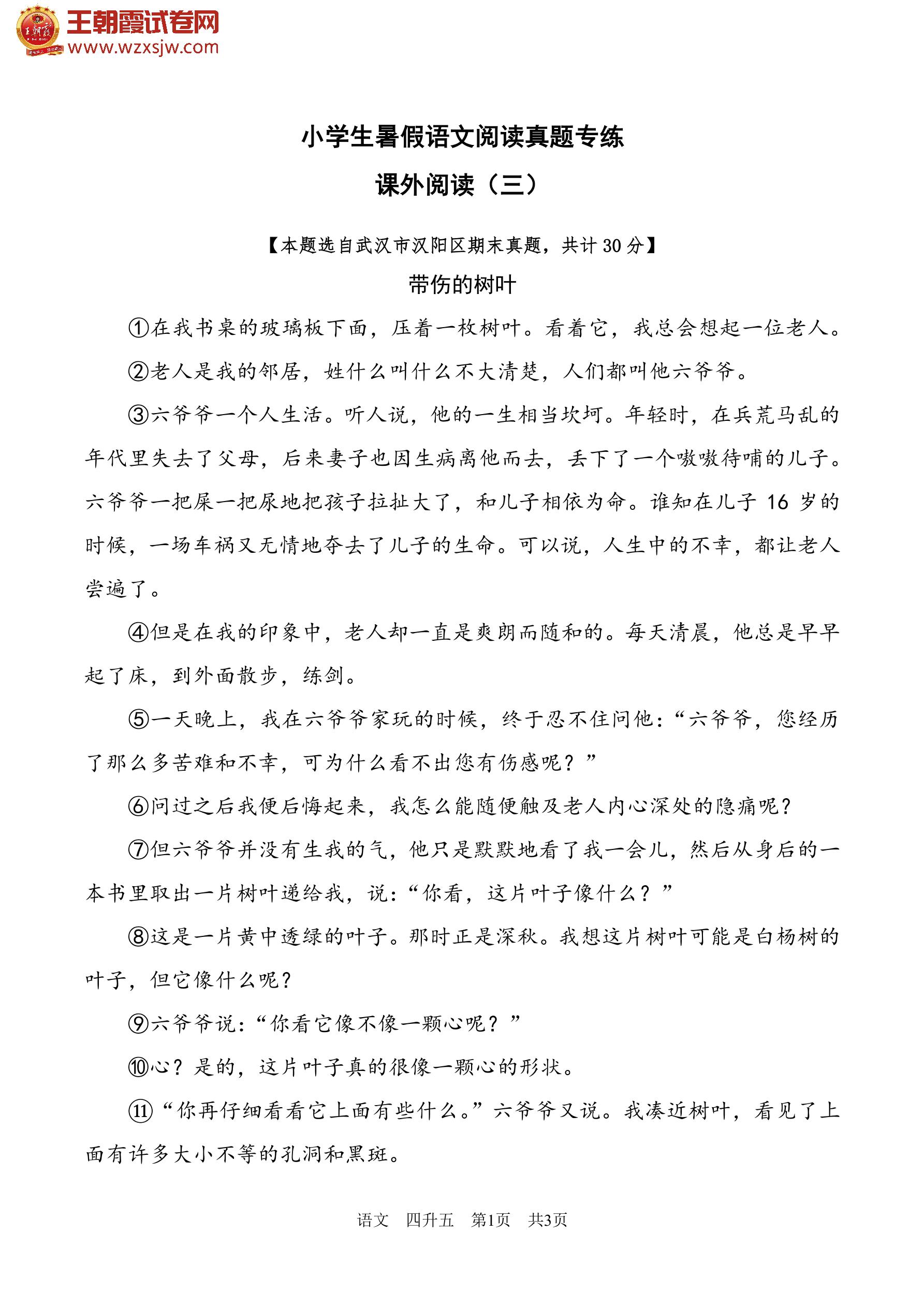 【四升五】小学生暑假语文阅读真题专练——课外阅读(三)